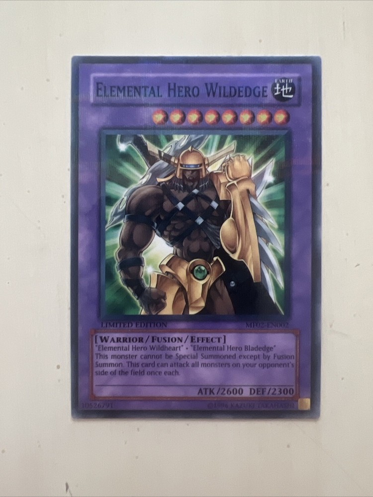 This limited edition Yu-Gi-Oh! TCG card features the Elemental Hero Wildedge, a powerful warrior monster with 2600 attack and 2300 defense. The card is part of the Mattel Action Figure Series 2 set and has a parallel rare rarity, making it a valuable addition to any collection. As a fusion/effect monster card, Wildedge has a unique effect that can give players an edge in battle. The card is manufactured by Action and has the card number MF02-EN002. Perfect for fans of the Yu-Gi-Oh! TCG game, this card is a must-have for any serious collector.