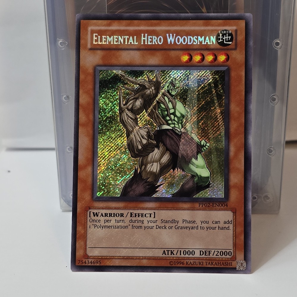 Step into the world of strategic duels with the Yu-Gi-Oh! TCG Elemental Hero Woodsman, a Secret Rare Holo card that brings a touch of nostalgia to your collection. Featuring the iconic Woodsman character, this card is numbered PP02-EN004 and is a must-have for enthusiasts looking to enhance their gameplay or collectors seeking a standout piece from the franchise's early sets. Proudly original and hailing from 1996, this piece of Yu-Gi-Oh! history is ungraded, preserving its authentic charm. The card boasts the Unlimited feature, ensuring it fits seamlessly into your deck. Its pristine state reflects careful handling, making it a gem for both casual fans and serious collectors alike.