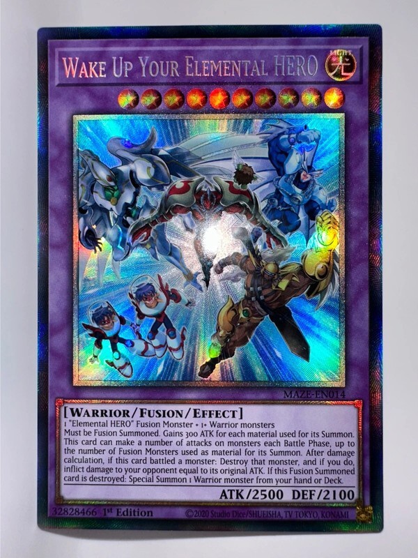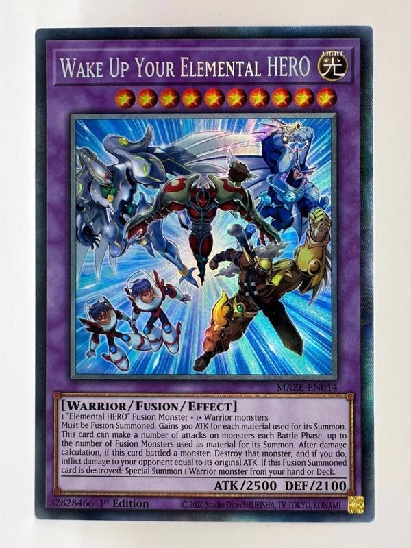 You are buying: Wake Up Your Elemental Hero - MAZE-EN014 - Collector's Rare - 1st Edition Cards will be sent in individual sleeves and a top loader....