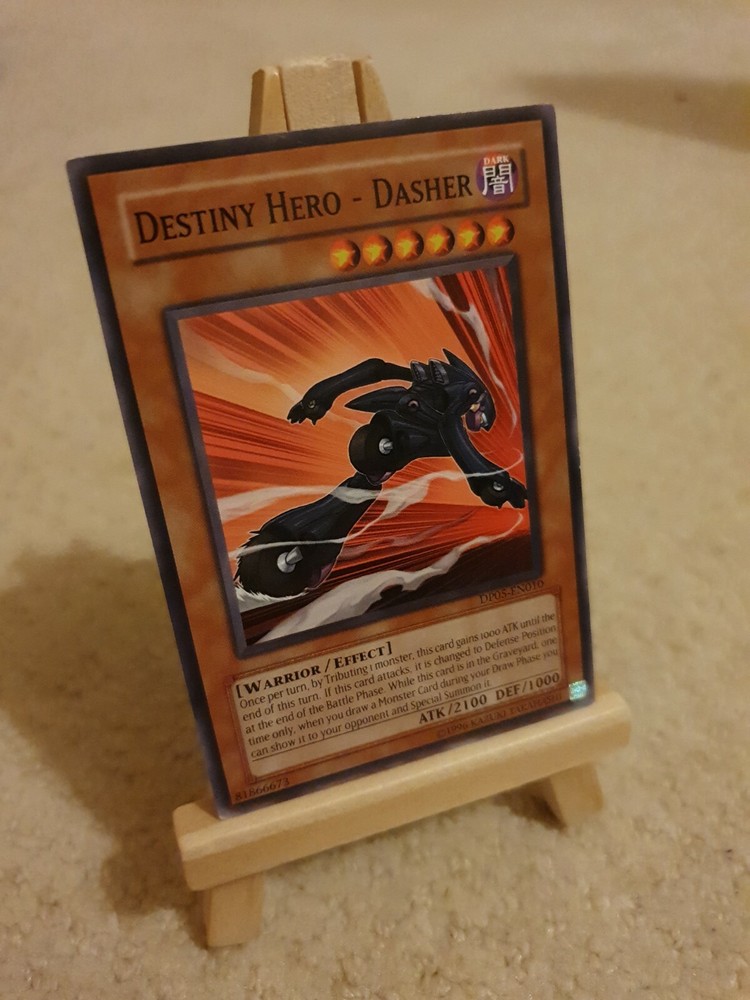 This auction is for... DESTINY HERO - DASHER (DP05-EN010) UNLIMITED EDITION *COMMON* - VERY LIGHT PLAY / NEAR MINT CONDITION (SEE PHOTOS) VERY DESIRABLE CARD - GRAB IT WHILE YOU CAN! THE CARD IN THE PICTURE IS THE EXACT CARD YOU WILL RECEIVE! All cards I sell are in MINT condition (UNLESS STATED) and are Official Konami and tournament legal. CHECK OUT THE OTHER YU-GI-OH CARDS I'M SELLING!.. BEAR WITH ME WHILE I ADD MORE ITEMS I only accept paypal as payment from overseas bidders. If you have any questions then please ask. Thanks for looking.....now over to you