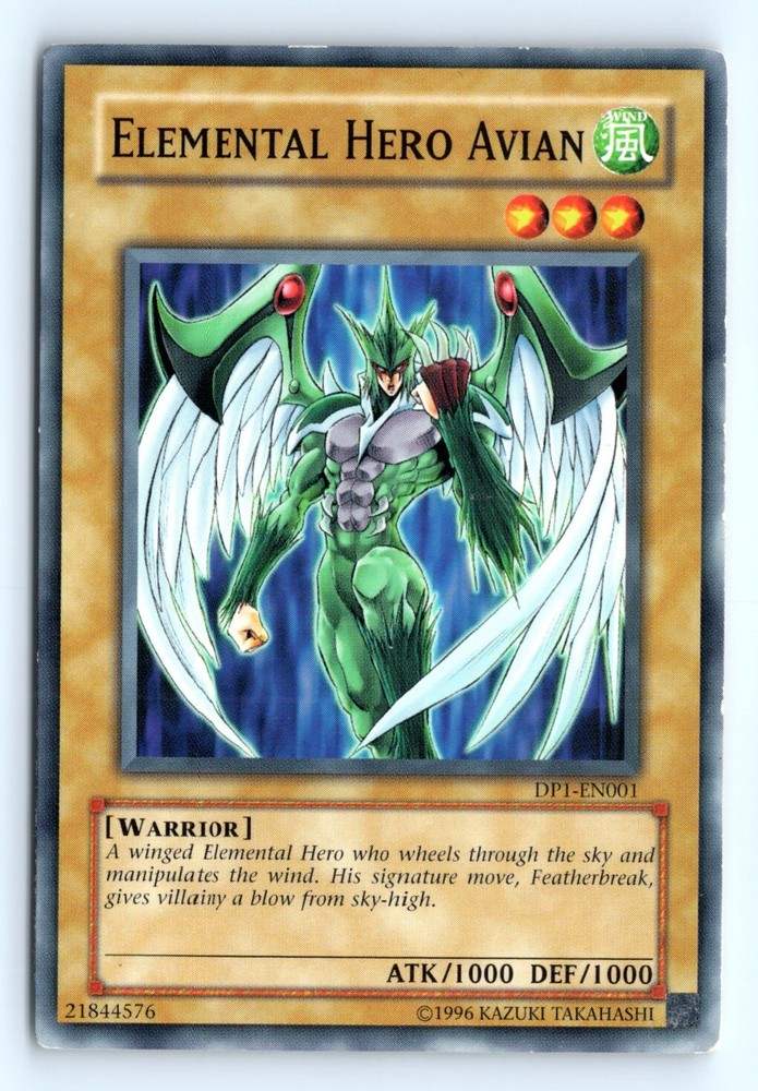 Cards 20$ or Less in Price Will be shipped in a penny sleeve and in a top loader or Semi Rigid card holder by Ebay standard envelope. Please check out the scans for a good look at the condition. This is a example of a Duelist Pack 1: Jaden Yuki #DP1-EN001 Elemental Hero Avian . Please check out our other listings for more great cards.