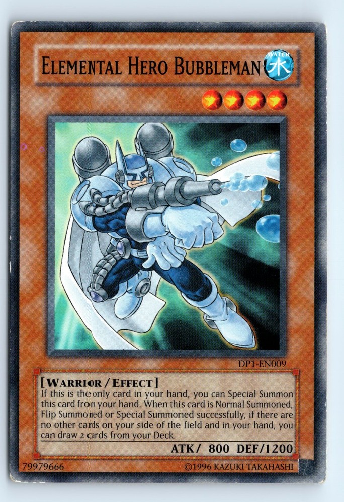 Cards 20$ or Less in Price Will be shipped in a penny sleeve and in a top loader or Semi Rigid card holder by Ebay standard envelope. Please check out the scans for a good look at the condition. This is a example of a Duelist Pack 1: Jaden Yuki #DP1-EN009 Elemental Hero Bubbleman . Please check out our other listings for more great cards.