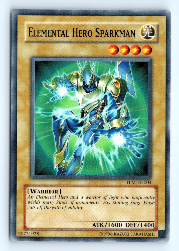 Cards 20$ or Less in Price Will be shipped in a penny sleeve and in a top loader or Semi Rigid card holder by Ebay standard envelope. Please check out the scans for a good look at the condition. This is a example of a The Lost Millennium #TLM-EN004 Elemental Hero Sparkman . Please check out our other listings for more great cards.