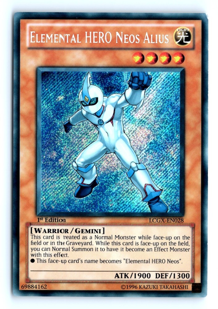 Cards 20$ or Less in Price Will be shipped in a penny sleeve and in a top loader by Ebay standard envelope. Please check out the scans for a good look at the condition. This is a example of a Legendary Collection 2 #LCGX-EN028 Elemental HERO Neos Alius .Other important information about this card: Secret RareIn Elemental HERO Neos Alius played for the .Please check out our other listings for more great cards.