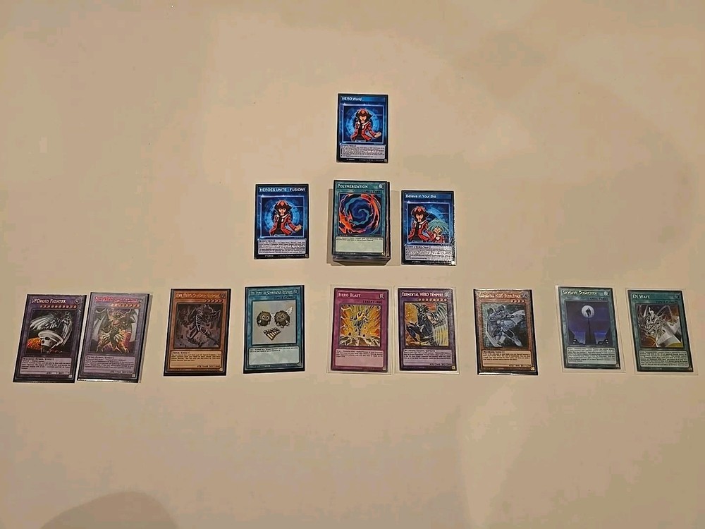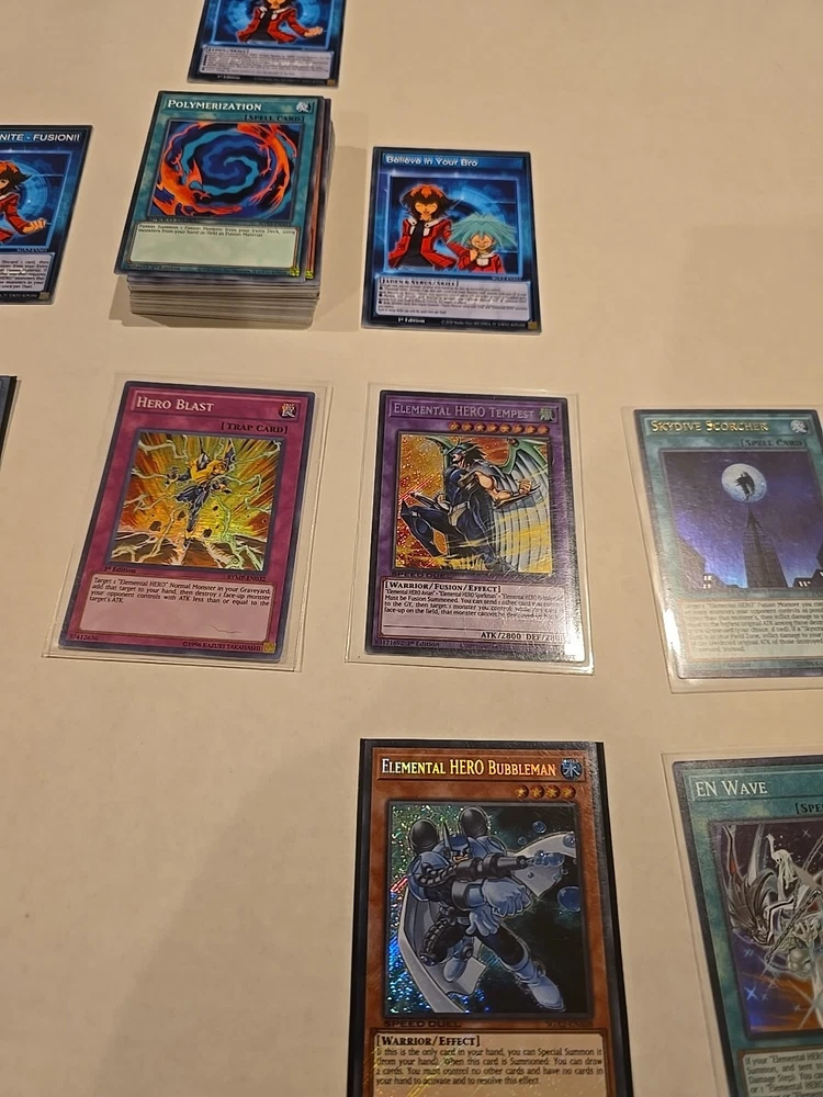 Jaden Yuki elemental hero themed lot Mostly Commons with a few rares Most cards are in NM to LP however there are some common cards with damage unfortunately (ESTIMATE, numbers and conditions may be slightly off) TOTAL: 90+ cards INCLUDING BUT NOT LIMITED 1 A Hero Lives [SGX2] 1 Believe in Your Bro [SGX2] 1 Bubble Shuffle [DP1] 1 Bubble Shuffle [] 1 Bubble Shuffle [DP1] 1 Chrysalis Larva [] 1 Dark Calling [LDS3] 1 Dark Fusion [LDS3] 1 Elemental Hero Avian [DP1] 1 Elemental HERO Avian [SGX2] 1 Elemental HERO Avian [LC02] 1 Elemental Hero Bladedge [] 1 Elemental HERO Bladedge [SGX2] 1 Elemental HERO Blazeman [SGX2] 1 Elemental Hero Bubbleman [] 2 Elemental HERO Bubbleman [SGX2] 1 Elemental HERO Bubbleman [LC02] 1 Elemental HERO Bubbleman (Secret Rare) [SGX2] 1 Elemental HERO Burstinatrix [SGX2] 1 Elemental HERO Clayman [SGX2] 1 Elemental HERO Electrum [SGX2] 1 Elemental HERO Mariner [SGX2] 1 Elemental Hero Necroid Shaman [DR04] 1 Elemental HERO Necroid Shaman [SGX2] 1 Elemental Hero Neos [] 1 Elemental HERO Neos [DUPO] 1 Elemental HERO Nova Master [SGX2] 1 Elemental HERO Ocean [CT07] 1 Elemental HERO Sparkman [SGX2] 1 Elemental HERO Sparkman [DEM2] 1 Elemental HERO Stratos [RYMP] 2 Elemental HERO Tempest [SGX2] 1 Elemental HERO Tempest (Secret Rare) [SGX2] 1 Elemental HERO Wild Wingman [SGX2] 1 Elemental HERO Wildheart [SGX2] 1 EN Wave [POTE] 1 Evil HERO Infernal Sniper [LDS3] 1 Evil HERO Sinister Necrom [LDS3] 1 Evil HERO Wild Cyclone (Red) [LDS3] 1 Favorite Hero [LDS3] 2 Feather Wind [] 1 Feather Wind [DR04] 1 Fifth Hope [SGX2] 1 Generation Next [LDS3] 1 Goddess with the Third Eye [SGX2] 1 H - Heated Heart [LDS3] 1 H - Heated Heart [SGX2] 1 Hero Barrier [DP03] 1 Hero Blast [RYMP] 1 Hero Counterattack [SGX2] 1 Hero Flash!! [LC02] 1 Hero Kid [] 1 Hero Mask [RYMP] 1 Hero Medal [DP06] 1 Hero Medal [DP06] 1 Hero Ring [SGX2] 1 Hero Signal [SGX2] 1 HERO World [SGX2] 1 HEROES UNITE - FUSION!! [SGX2] 1 Kaiser Glider [SDBE] 1 Magistery Alchemist [LDS3] 1 Necro Fusion [MP19] 1 Neo-Spacian Air Hummingbird [DP06] 1 Neo-Spacian Grand Mole [DP06] 1 O - Oversoul [] 4 Over Fusion [POTE] 1 R - Righteous Justice [SGX2] 1 R - Righteous Justice [LDS3] 1 R - Righteous Justice [LC02] 1 Reverse of Neos [DP06] 1 Sabatiel - The Philosopher's Stone [SGX2] 1 Skydive Scorcher [DUSA] 1 Skyscraper 2 - Hero City [SGX2] 1 Skyscraper 2 - Hero City [] 1 Space Gift [LODT] 1 Spark Blaster [] 1 Supreme King's Castle [LDS3] 1 The Flute of Summoning Kuriboh [GFP2] 1 Tribute Doll [SGX2] 1 UFOroid Fighter (Secret Rare) [SGX2] 1 Winged Kuriboh [SGX2]