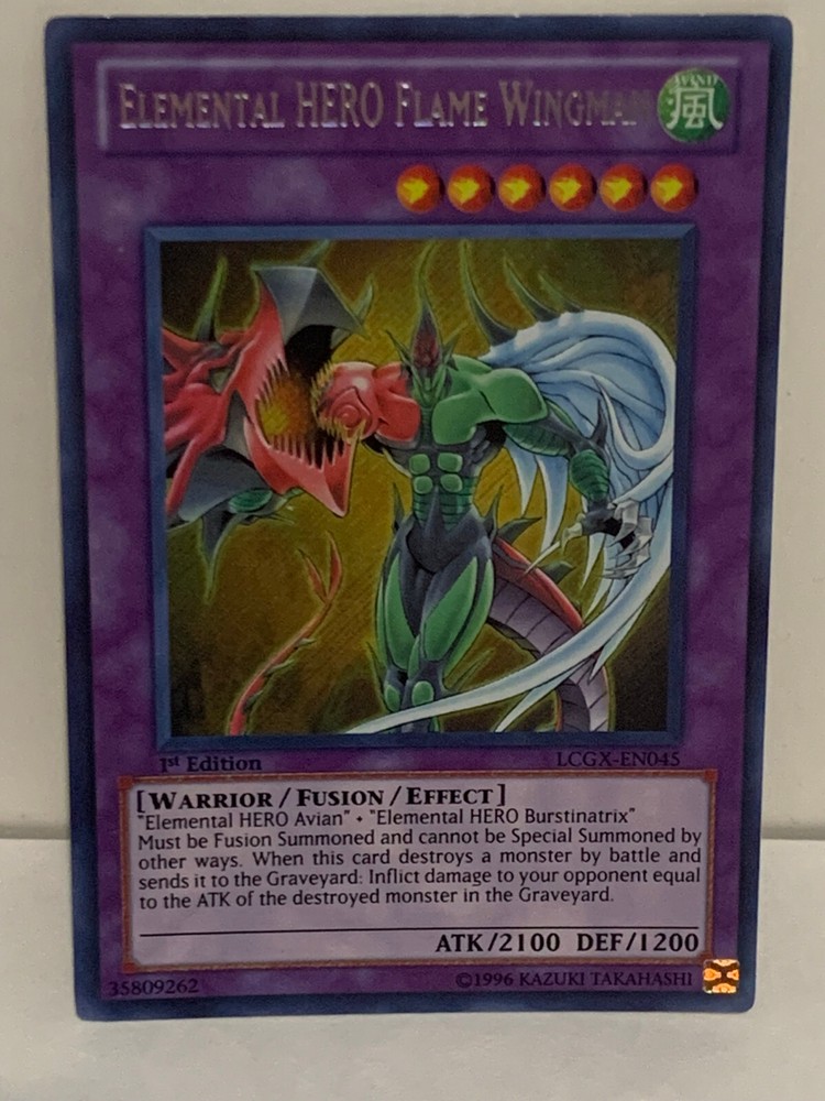 Up for sale is a first edition copy of Elemental HERO Flare Wingman from Legendary Collection 2: The Duel Academy Years. Card is near mint and has not been played with. US buyers only.