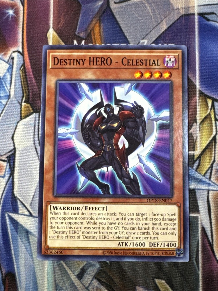 Yugioh! 1x Destiny HERO - Celestial - OP18-EN017 - Common - Unlimited Edition Ne. Condition is Ungraded. Shipped with Canada Post Lettermail....