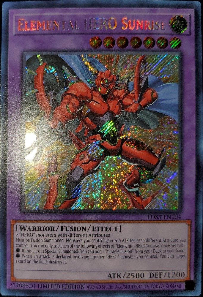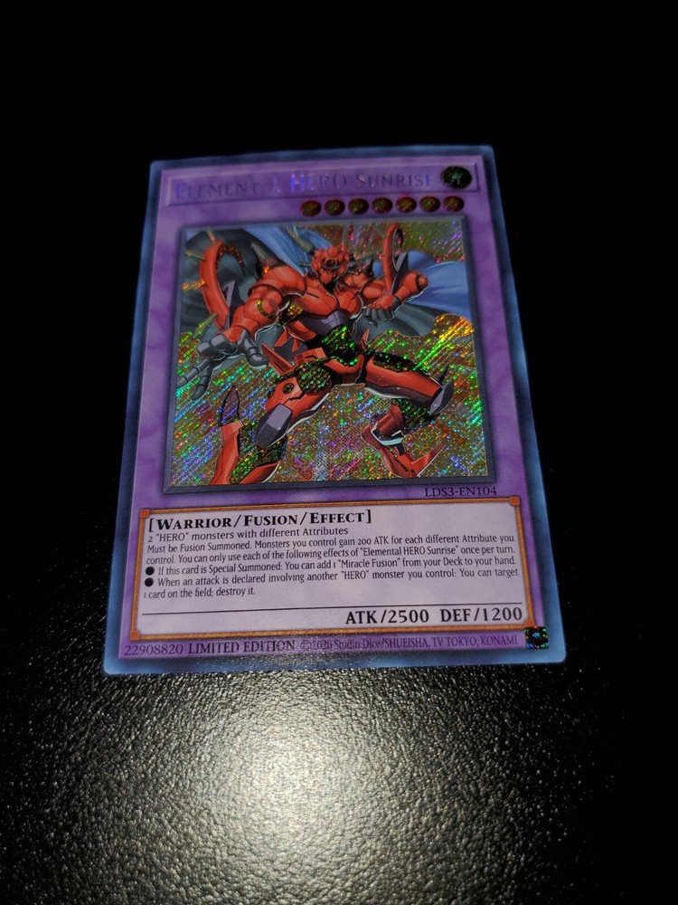 Yugioh 2022 Elemental Hero Sunrise Limited Ed. LDS3-EN104 You will receive one. Picture above is for reference only. Will ship safely & securely. Placed inside toploader wrapped in an antiweather and antislip team bag. As a long term seller on eBay, I want every order placed with me to arrive timely and safely. You are entrusting me with your hard earned money therefore I will not only meet, but surpass your trusted expectations. Feel free to message for further pictures or questions.
