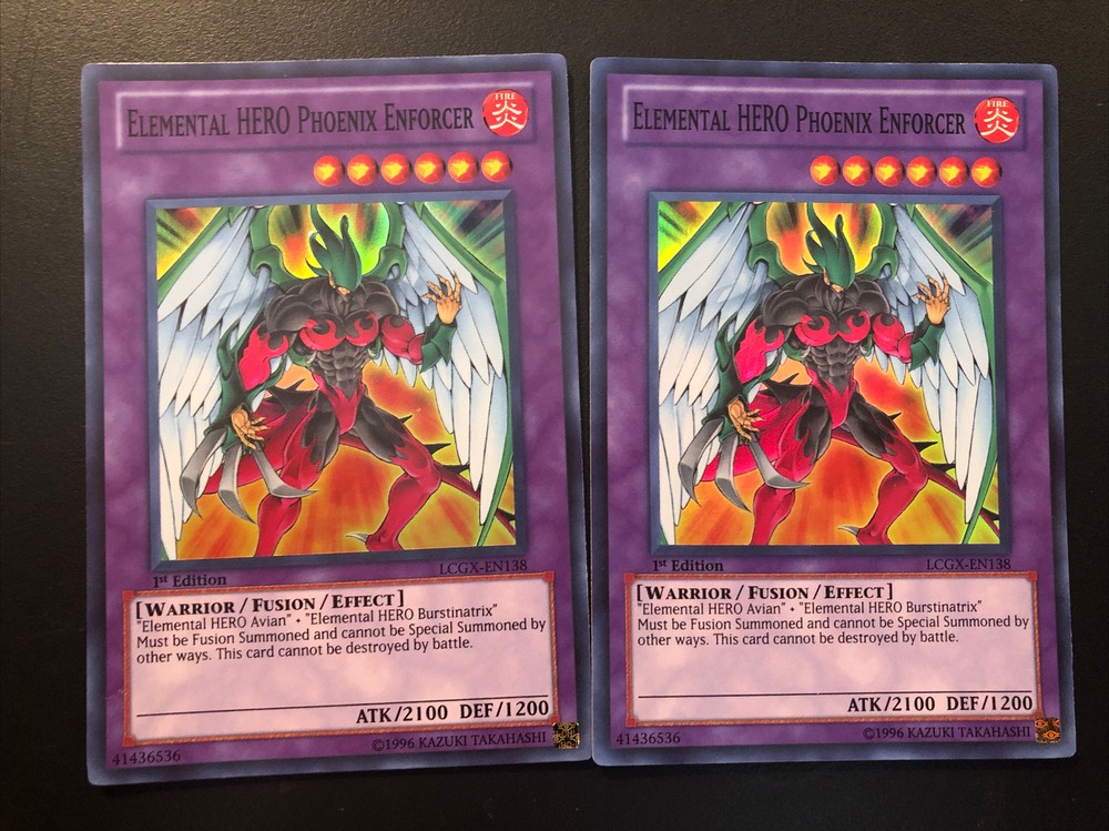 You are purchasing two copies of Yugioh Elemental HERO Phoenix Enforcer LCGX-EN138 Super Rare NM Cards will be shipped 2-3 days after payment is made...