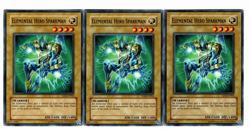 What's Included: Cds Card Name Rarity Edition Set Code Condition 3 Elemental Hero Sparkman Common Unlimited TLM-EN004 Light Play Additional Comments: All Pictures are scans of actual product(s) Light Play Shipping/Feedback: **International Buyers** Total Shipping on all Combined orders will be $14.00 100% Positive & 5 Star Feedback 3 Years Running Orders Paid before 12:00 PM ET are shipped SAME DAY. Cards are shipped in penny sleeve(s) and toploader(s). Bubble Envelope and Tracking on Higher Cost Items. Card Grading: Grading cards is a subjective art form. I try to follow the TCGPlayer(Recently purchased by eBay) grading guide. Sometimes I will even put a grade like Very Light Play or Light to Moderate. The reason for that is because a card could be on the High or Low end of a Grade. Near Mint (NM) - Mostly clean card with very few flaws. Card should have clean corners with no wear but could have a tiny ding at a corner or edge. There could be some minor scuffing and scratches more so on the back. I am stricter regarding the front of the card. Keep in mind I even open fresh packs and get cards with scratches and corner dings. If you are a card collector message me if you have any questions. Especially for cards from older sets. Light Play (LP) - Cards will have some corner and/or edge wear. There could be a small bend but nothing major. There could also be some minor scuffing on the front. If I see more than a few dings, nicks and scratches I willl downgrade the card to Moderate Play. Moderate Play (MP) - Cards have a wide range of conditions. This could include cards that are very close to Light Play or close to Heavy Play. Expect some bends and/or a crease or two. I don't usually sell cards in this condition so it you want an exact grade please contact me. Heavy Play(HP) - What can I say. The card is a total wreck. Creases and heavy wear.