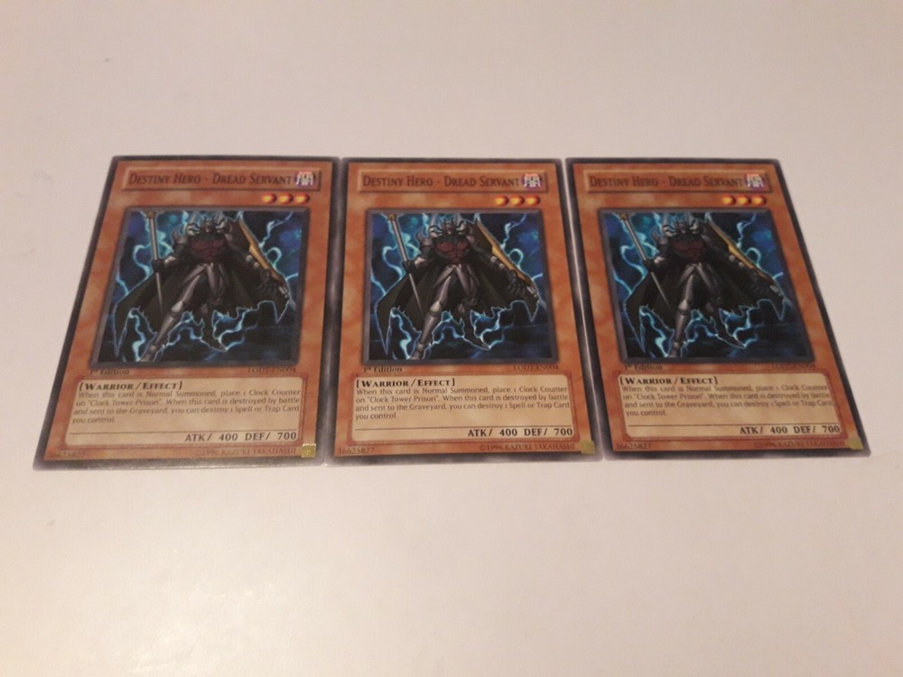 Yugioh 3x Destiny Hero - Dread Servant LODT-EN004 Very good condition. Will be posted in toploader. Card as pictured. Please ask if you have any questions.