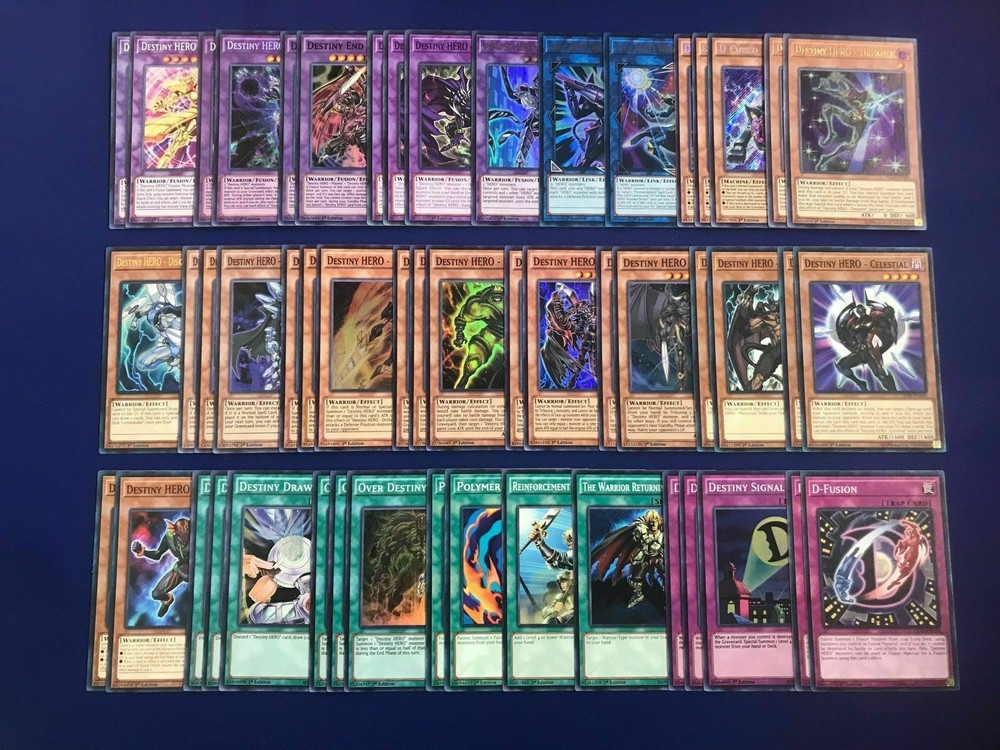 Hey guys I am new to Ebay so give me feedback or ask questions if your unsure about something. Happy Bidding!!! **Picture may have been edited due to Inventory Changes Please read description Below.** Shipping - All orders will be shipped with bubble mailer and a protective case. - I ship to both Domestic (U.S.) and International destinations! Payment - Please pay within 3 days of your order to avoid an Unpaid Item Case. This just helps me run things smoothly for other bidders/buyers and myself. Will appreciate if you please leave feedback when you receive your item, and I will leave feedback as well. Contact me if anything is wrong with your order so I can have a chance to fix the issue- Your satisfaction is most important! I am in grad school and I work full time so my items take a little longer to Ship! Please Allow me the Set Handling time before your item will be shipped! It may take the full handling time set Thank You!!! **If you are a international buyer, Customs Fees are the responsobility of the Buyer** A bonus for ordering you will also Get a Free Holo Card from my collection. It maybe Super Rare, Ultra Rare, or SECRET Rare!!! As a Bonus Gift for buying my auction you will Recieve a Bonus Free Holo Card. It can be Super Rare, Ultra Rare, or Secret Rare or even GHOST Rare!!! You will receive the following items: Extra (x12): Destiny HERO - Dusktopia (x2) Destiny HERO - Dystopia (x2) Destiny HERO - Dangerous (x3) Destiny End Dragoon (x2) Vision HERO Adoration (x1) Xtra HERO Wonder Driver (x1) Xtra HERO Dread Decimator (x1) Monster (x24): D Cubed (x3) Destiny HERO - Disk Commander (x1) Destiny HERO - Dreamer (x2) Destiny HERO - Dogma (x2) Destiny HERO - Plasma (x2) Destiny HERO - Diamond Dude (x3) Destiny HERO - Drilldark (x3) Destiny HERO - Dynatag (x3) Destiny HERO - Malicious (x2) Destiny HERO - Celestial (x2) Destiny HERO - Decider (x2) Spell (x11): Destiny Draw (x3) Over Destiny (x3) Polymerization (x2) Reinforcement of the Army (x1) The Warrior Returning Alive (x1) Trap (x5): Destiny Signal (x3) D-Fusion (x2)