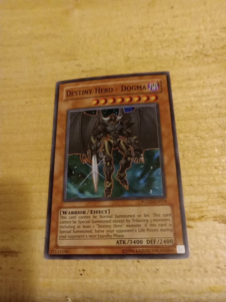 This Yugioh Card - Destiny Hero Dogma POTD-EN014 - Unlimited Super Rare NM/VLP is a highly sought-after addition to any collection. With its stunning foil finish and vintage status, it's sure to impress both avid collectors and casual fans alike. Featuring a Warrior creature/monster type and an Effect card type, this card is a must-have for any Yu-Gi-Oh! TCG player looking to boost their deck's rarity and power. Manufactured by Konami, this card is part of the Power of the Duelist set and boasts a unique Unlimited edition. Don't miss your chance to add this rare gem to your collection today.
