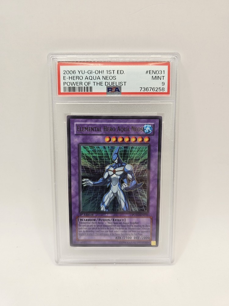 Yugioh Card Elemental Hero Aqua Neos POTD-EN031 1st Edition PSA 9 ENG. Entra nel mio negozio ebay, troverai carte di YuGiOh!, Pokemon e One Piece. Possibilità di effettuare unica spedizione su ordini ...
