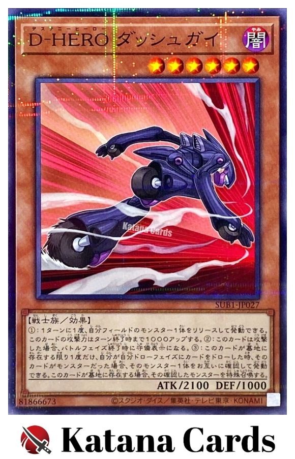 Yugioh Cards | Destiny HERO - Dasher Parallel Rare | SUB1-JP027 Japanese C ondition Near Mint to Excellent Yugioh Cards Check our Yugioh cards here. D iscounts!!! Buy more than 2 cards in my store, Save 3 - 5% off for each cards. Yugioh Cards Check our Yugioh cards here. Discounts are applied automatically by simply adding the product to your cart! If the discount is not applied automatically due to eBay's system error, please inform us of the "Discount Error" in the message after purchasing the item. We will manually apply the discount based on the number of items purchased. S hipping We usually ship within 3 - 5 business days of receiving cleared payment. Economy Shipping - No Tracking Number - It takes 7 - 30 days after shipment. Expedited Shipping - Tracking Number - It takes 3 - 10 days after shipment. If you buy more than 2 cards and choose Expedited Shipping, please select Expedited Shipping for just 1 item. We will ship the items in one package. P ayment We can be contacted at any time through eBay messages if you have any questions, comments or product requests. We will respond to you within 24 hours and do our best to help you out! We encourage our customers to contact us with any questions or concerns! We'd like to be sure you are completely satisfied with your purchase. We do not mark merchandise values below value or mark items as gifts. US and International government regulations prohibit such behavior. I nternational Buyers - Please Note Import duties, taxes, and charges are not included in the item price or shipping cost. These charges are the buyers responsibility. Please check with your country's customs office to determine what these additional costs will be prior to bidding or buying.