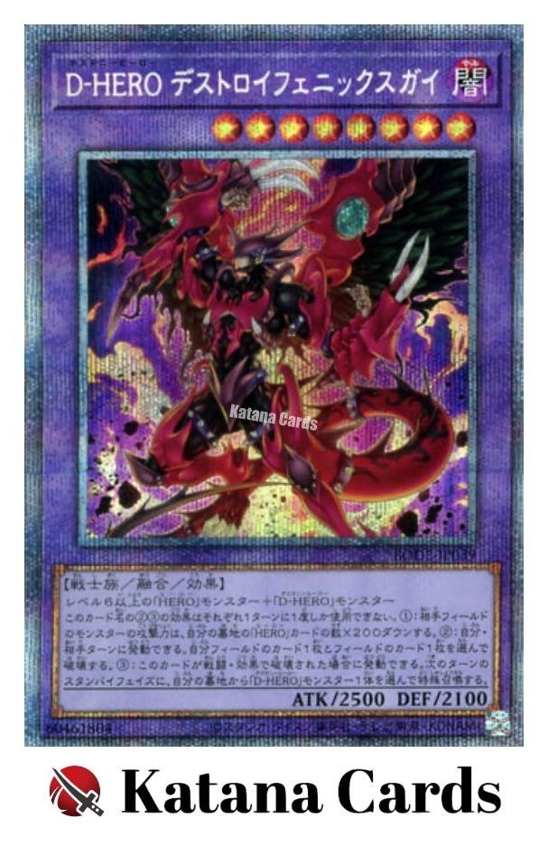 Yugioh Cards | Destiny HERO - Destroy Phoenix Enforcer Prismatic Secret Rare | BO C ondition Near Mint to Excellent Yugioh Cards Check our Yugioh cards here. D iscounts!!! Buy more than 2 cards in my store, Save 3 - 5% off for each cards. Yugioh Cards Check our Yugioh cards here. Discounts are applied automatically by simply adding the product to your cart! If the discount is not applied automatically due to eBay's system error, please inform us of the "Discount Error" in the message after purchasing the item. We will manually apply the discount based on the number of items purchased. S hipping We usually ship within 3 - 5 business days of receiving cleared payment. Economy Shipping - No Tracking Number - It takes 7 - 30 days after shipment. Expedited Shipping - Tracking Number - It takes 3 - 10 days after shipment. If you buy more than 2 cards and choose Expedited Shipping, please select Expedited Shipping for just 1 item. We will ship the items in one package. P ayment We can be contacted at any time through eBay messages if you have any questions, comments or product requests. We will respond to you within 24 hours and do our best to help you out! We encourage our customers to contact us with any questions or concerns! We'd like to be sure you are completely satisfied with your purchase. We do not mark merchandise values below value or mark items as gifts. US and International government regulations prohibit such behavior. I nternational Buyers - Please Note Import duties, taxes, and charges are not included in the item price or shipping cost. These charges are the buyers responsibility. Please check with your country's customs office to determine what these additional costs will be prior to bidding or buying.