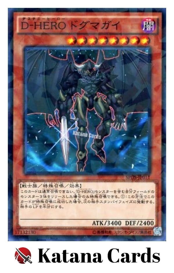 Yugioh Cards | Destiny HERO - Dogma Parallel Rare | SPDS-JP011 Japanese C ondition Near Mint to Excellent Yugioh Cards Check our Yugioh cards here. D iscounts!!! Buy more than 2 cards in my store, Save 3 - 5% off for each cards. Yugioh Cards Check our Yugioh cards here. Discounts are applied automatically by simply adding the product to your cart! If the discount is not applied automatically due to eBay's system error, please inform us of the "Discount Error" in the message after purchasing the item. We will manually apply the discount based on the number of items purchased. S hipping We usually ship within 3 - 5 business days of receiving cleared payment. Economy Shipping - No Tracking Number - It takes 7 - 30 days after shipment. Expedited Shipping - Tracking Number - It takes 3 - 10 days after shipment. If you buy more than 2 cards and choose Expedited Shipping, please select Expedited Shipping for just 1 item. We will ship the items in one package. P ayment We can be contacted at any time through eBay messages if you have any questions, comments or product requests. We will respond to you within 24 hours and do our best to help you out! We encourage our customers to contact us with any questions or concerns! We'd like to be sure you are completely satisfied with your purchase. We do not mark merchandise values below value or mark items as gifts. US and International government regulations prohibit such behavior. I nternational Buyers - Please Note Import duties, taxes, and charges are not included in the item price or shipping cost. These charges are the buyers responsibility. Please check with your country's customs office to determine what these additional costs will be prior to bidding or buying.