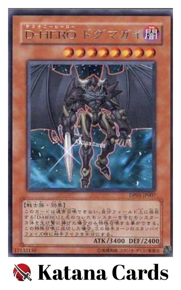 Yugioh Cards | Destiny HERO - Dogma Rare | DP05-JP007 Japanese C ondition Near Mint to Excellent Yugioh Cards Check our Yugioh cards here. D iscounts!!! Buy more than 2 cards in my store, Save 3 - 5% off for each cards. Yugioh Cards Check our Yugioh cards here. Discounts are applied automatically by simply adding the product to your cart! If the discount is not applied automatically due to eBay's system error, please inform us of the "Discount Error" in the message after purchasing the item. We will manually apply the discount based on the number of items purchased. S hipping We usually ship within 3 - 5 business days of receiving cleared payment. Economy Shipping - No Tracking Number - It takes 7 - 30 days after shipment. Expedited Shipping - Tracking Number - It takes 3 - 10 days after shipment. If you buy more than 2 cards and choose Expedited Shipping, please select Expedited Shipping for just 1 item. We will ship the items in one package. P ayment We can be contacted at any time through eBay messages if you have any questions, comments or product requests. We will respond to you within 24 hours and do our best to help you out! We encourage our customers to contact us with any questions or concerns! We'd like to be sure you are completely satisfied with your purchase. We do not mark merchandise values below value or mark items as gifts. US and International government regulations prohibit such behavior. I nternational Buyers - Please Note Import duties, taxes, and charges are not included in the item price or shipping cost. These charges are the buyers responsibility. Please check with your country's customs office to determine what these additional costs will be prior to bidding or buying.