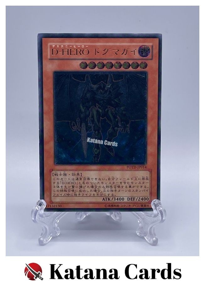 Yugioh Cards | Destiny HERO - Dogma Ultimate Rare | POTD-JP014 Japanese C ondition Near Mint to Excellent Yugioh Cards Check our Yugioh cards here. D iscounts!!! Buy more than 2 cards in my store, Save 3 - 5% off for each cards. Yugioh Cards Check our Yugioh cards here. Discounts are applied automatically by simply adding the product to your cart! If the discount is not applied automatically due to eBay's system error, please inform us of the "Discount Error" in the message after purchasing the item. We will manually apply the discount based on the number of items purchased. S hipping We usually ship within 3 - 5 business days of receiving cleared payment. Economy Shipping - No Tracking Number - It takes 7 - 30 days after shipment. Expedited Shipping - Tracking Number - It takes 3 - 10 days after shipment. If you buy more than 2 cards and choose Expedited Shipping, please select Expedited Shipping for just 1 item. We will ship the items in one package. P ayment We can be contacted at any time through eBay messages if you have any questions, comments or product requests. We will respond to you within 24 hours and do our best to help you out! We encourage our customers to contact us with any questions or concerns! We'd like to be sure you are completely satisfied with your purchase. We do not mark merchandise values below value or mark items as gifts. US and International government regulations prohibit such behavior. I nternational Buyers - Please Note Import duties, taxes, and charges are not included in the item price or shipping cost. These charges are the buyers responsibility. Please check with your country's customs office to determine what these additional costs will be prior to bidding or buying.