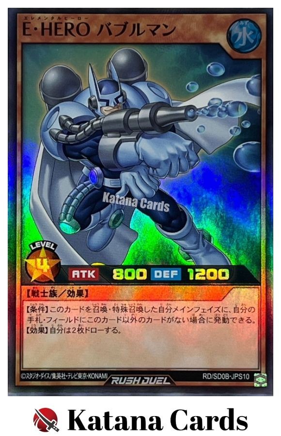 Yugioh Cards | Elemental HERO Bubbleman (Rush Duel) Super Rare | RD/SD0B-JPS10 J C ondition Near Mint to Excellent Yugioh Cards Check our Yugioh cards here. D iscounts!!! Buy more than 2 cards in my store, Save 3 - 5% off for each cards. Yugioh Cards Check our Yugioh cards here. Discounts are applied automatically by simply adding the product to your cart! If the discount is not applied automatically due to eBay's system error, please inform us of the "Discount Error" in the message after purchasing the item. We will manually apply the discount based on the number of items purchased. S hipping We usually ship within 3 - 5 business days of receiving cleared payment. Economy Shipping - No Tracking Number - It takes 7 - 30 days after shipment. Expedited Shipping - Tracking Number - It takes 3 - 10 days after shipment. If you buy more than 2 cards and choose Expedited Shipping, please select Expedited Shipping for just 1 item. We will ship the items in one package. P ayment We can be contacted at any time through eBay messages if you have any questions, comments or product requests. We will respond to you within 24 hours and do our best to help you out! We encourage our customers to contact us with any questions or concerns! We'd like to be sure you are completely satisfied with your purchase. We do not mark merchandise values below value or mark items as gifts. US and International government regulations prohibit such behavior. I nternational Buyers - Please Note Import duties, taxes, and charges are not included in the item price or shipping cost. These charges are the buyers responsibility. Please check with your country's customs office to determine what these additional costs will be prior to bidding or buying.