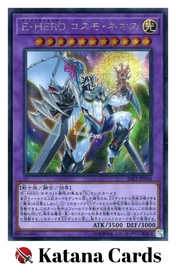 Yugioh Cards | Elemental HERO Cosmo Neos Secret Rare | SAST-JP036 Japanese C ondition Near Mint to Excellent Yugioh Cards Check our Yugioh cards here. D iscounts!!! Buy more than 3 cards in my store, Save $2 for each cards. Buy 3 cards, save $6 altogether. Buy 4 cards, save $8 altogether. Buy 5 cards, save $10 altogether and so on. Yugioh Cards Check our Yugioh cards here. Discounts are applied automatically by simply adding the product to your cart! S hipping We usually ship within 3 - 5 business days of receiving cleared payment. Economy Shipping - No Tracking Number - It takes 7 - 30 days after shipment. Expedited Shipping - Tracking Number - It takes 3 - 10 days after shipment. If you buy more than 2 cards and choose Expedited Shipping, please select Expedited Shipping for just 1 item. We will ship the items in one package. P ayment We can be contacted at any time through eBay messages if you have any questions, comments or product requests. We will respond to you within 24 hours and do our best to help you out! We encourage our customers to contact us with any questions or concerns! We'd like to be sure you are completely satisfied with your purchase. We do not mark merchandise values below value or mark items as gifts. US and International government regulations prohibit such behavior. I nternational Buyers - Please Note Import duties, taxes, and charges are not included in the item price or shipping cost. These charges are the buyers responsibility. Please check with your country's customs office to determine what these additional costs will be prior to bidding or buying.
