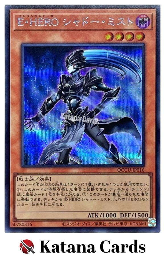 Yugioh Cards | Elemental HERO Shadow Mist Secret Rare | QCCU-JP016 Japanese C ondition Near Mint to Excellent Yugioh Cards Check our Yugioh cards here. D iscounts!!! Buy more than 2 cards in my store, Save 3 - 5% off for each cards. Yugioh Cards Check our Yugioh cards here. Discounts are applied automatically by simply adding the product to your cart! If the discount is not applied automatically due to eBay's system error, please inform us of the "Discount Error" in the message after purchasing the item. We will manually apply the discount based on the number of items purchased. S hipping We usually ship within 3 - 5 business days of receiving cleared payment. Economy Shipping - No Tracking Number - It takes 7 - 30 days after shipment. Expedited Shipping - Tracking Number - It takes 3 - 10 days after shipment. If you buy more than 2 cards and choose Expedited Shipping, please select Expedited Shipping for just 1 item. We will ship the items in one package. P ayment We can be contacted at any time through eBay messages if you have any questions, comments or product requests. We will respond to you within 24 hours and do our best to help you out! We encourage our customers to contact us with any questions or concerns! We'd like to be sure you are completely satisfied with your purchase. We do not mark merchandise values below value or mark items as gifts. US and International government regulations prohibit such behavior. I nternational Buyers - Please Note Import duties, taxes, and charges are not included in the item price or shipping cost. These charges are the buyers responsibility. Please check with your country's customs office to determine what these additional costs will be prior to bidding or buying.