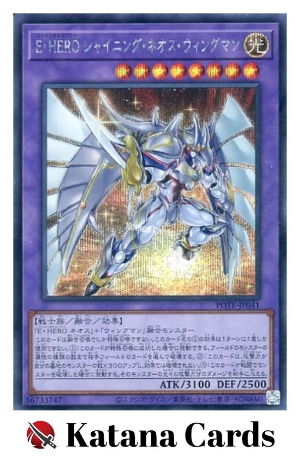Yugioh Cards | Elemental HERO Shining Neos Wingman Secret Rare | POTE-JP041 Japan C ondition Near Mint to Excellent Yugioh Cards Check our Yugioh cards here. D iscounts!!! Buy more than 2 cards in my store, Save 3 - 5% off for each cards. Yugioh Cards Check our Yugioh cards here. Discounts are applied automatically by simply adding the product to your cart! If the discount is not applied automatically due to eBay's system error, please inform us of the "Discount Error" in the message after purchasing the item. We will manually apply the discount based on the number of items purchased. S hipping We usually ship within 3 - 5 business days of receiving cleared payment. Economy Shipping - No Tracking Number - It takes 7 - 30 days after shipment. Expedited Shipping - Tracking Number - It takes 3 - 10 days after shipment. If you buy more than 2 cards and choose Expedited Shipping, please select Expedited Shipping for just 1 item. We will ship the items in one package. P ayment We can be contacted at any time through eBay messages if you have any questions, comments or product requests. We will respond to you within 24 hours and do our best to help you out! We encourage our customers to contact us with any questions or concerns! We'd like to be sure you are completely satisfied with your purchase. We do not mark merchandise values below value or mark items as gifts. US and International government regulations prohibit such behavior. I nternational Buyers - Please Note Import duties, taxes, and charges are not included in the item price or shipping cost. These charges are the buyers responsibility. Please check with your country's customs office to determine what these additional costs will be prior to bidding or buying.
