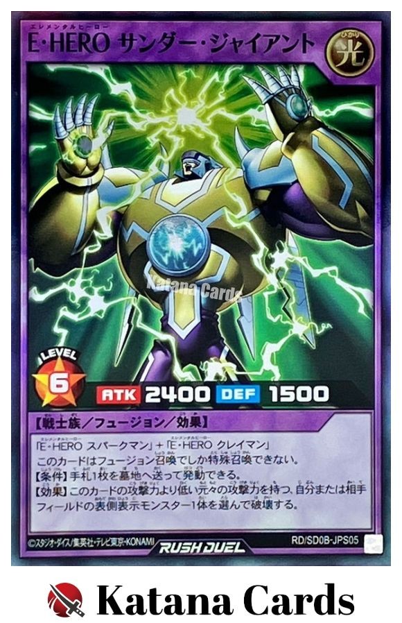 Yugioh Cards | Elemental HERO Thunder Giant (Rush Duel) Super Rare | RD/SD0B-JPS C ondition Near Mint to Excellent Yugioh Cards Check our Yugioh cards here. D iscounts!!! Buy more than 2 cards in my store, Save 3 - 5% off for each cards. Yugioh Cards Check our Yugioh cards here. Discounts are applied automatically by simply adding the product to your cart! If the discount is not applied automatically due to eBay's system error, please inform us of the "Discount Error" in the message after purchasing the item. We will manually apply the discount based on the number of items purchased. S hipping We usually ship within 3 - 5 business days of receiving cleared payment. Economy Shipping - No Tracking Number - It takes 7 - 30 days after shipment. Expedited Shipping - Tracking Number - It takes 3 - 10 days after shipment. If you buy more than 2 cards and choose Expedited Shipping, please select Expedited Shipping for just 1 item. We will ship the items in one package. P ayment We can be contacted at any time through eBay messages if you have any questions, comments or product requests. We will respond to you within 24 hours and do our best to help you out! We encourage our customers to contact us with any questions or concerns! We'd like to be sure you are completely satisfied with your purchase. We do not mark merchandise values below value or mark items as gifts. US and International government regulations prohibit such behavior. I nternational Buyers - Please Note Import duties, taxes, and charges are not included in the item price or shipping cost. These charges are the buyers responsibility. Please check with your country's customs office to determine what these additional costs will be prior to bidding or buying.