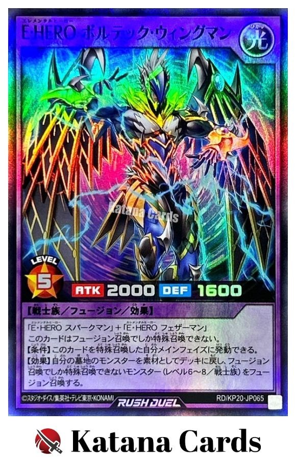 Yugioh Cards | Elemental HERO Voltic Wingman Super Rare | RD/KP20-JP065 Japanese C ondition Near Mint to Excellent Yugioh Cards Check our Yugioh cards here. D iscounts!!! Buy more than 2 cards in my store, Save 3 - 5% off for each cards. Yugioh Cards Check our Yugioh cards here. Discounts are applied automatically by simply adding the product to your cart! If the discount is not applied automatically due to eBay's system error, please inform us of the "Discount Error" in the message after purchasing the item. We will manually apply the discount based on the number of items purchased. S hipping We usually ship within 3 - 5 business days of receiving cleared payment. Economy Shipping - No Tracking Number - It takes 7 - 30 days after shipment. Expedited Shipping - Tracking Number - It takes 3 - 10 days after shipment. If you buy more than 2 cards and choose Expedited Shipping, please select Expedited Shipping for just 1 item. We will ship the items in one package. P ayment We can be contacted at any time through eBay messages if you have any questions, comments or product requests. We will respond to you within 24 hours and do our best to help you out! We encourage our customers to contact us with any questions or concerns! We'd like to be sure you are completely satisfied with your purchase. We do not mark merchandise values below value or mark items as gifts. US and International government regulations prohibit such behavior. I nternational Buyers - Please Note Import duties, taxes, and charges are not included in the item price or shipping cost. These charges are the buyers responsibility. Please check with your country's customs office to determine what these additional costs will be prior to bidding or buying.