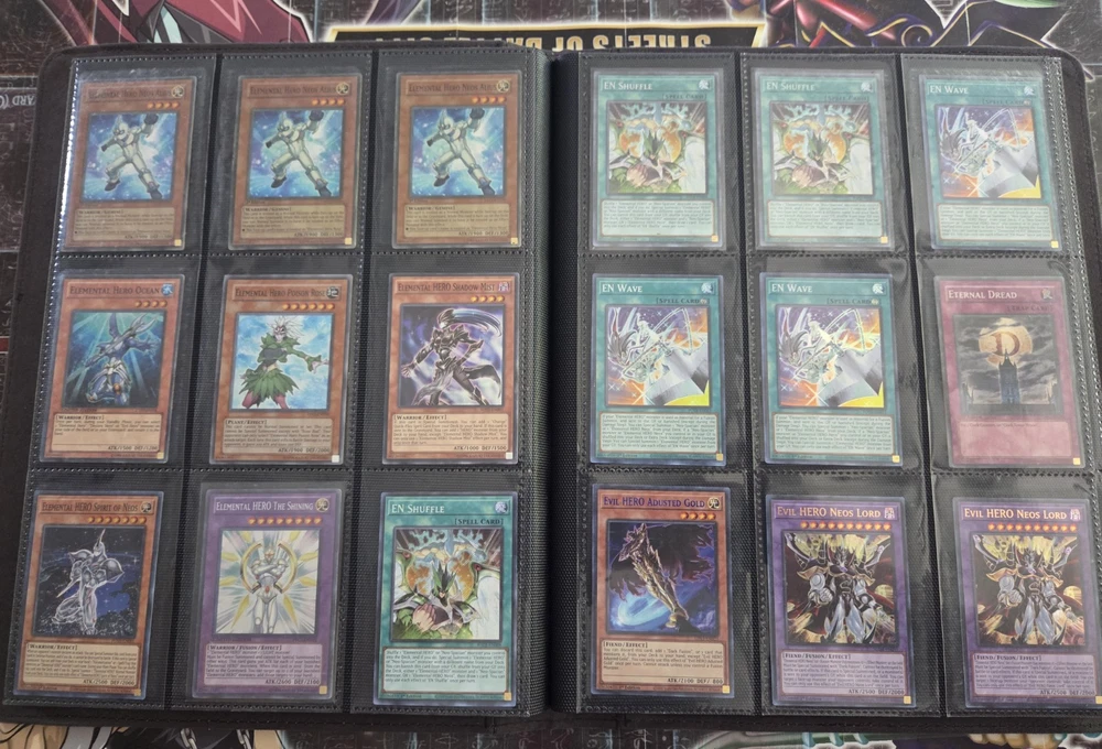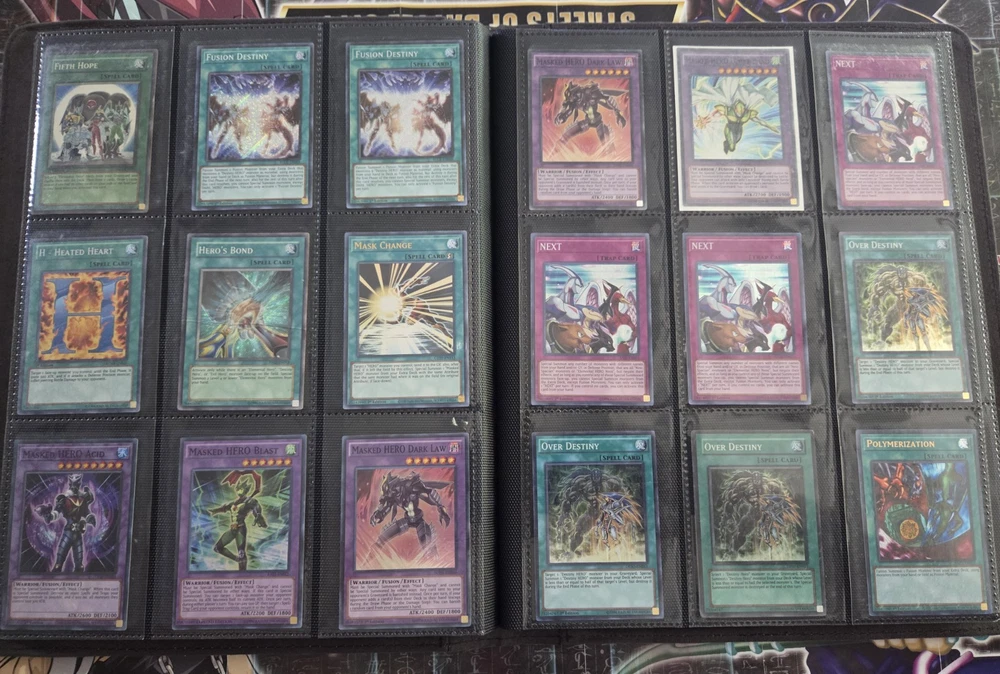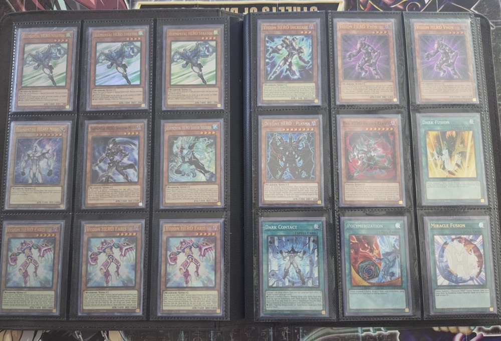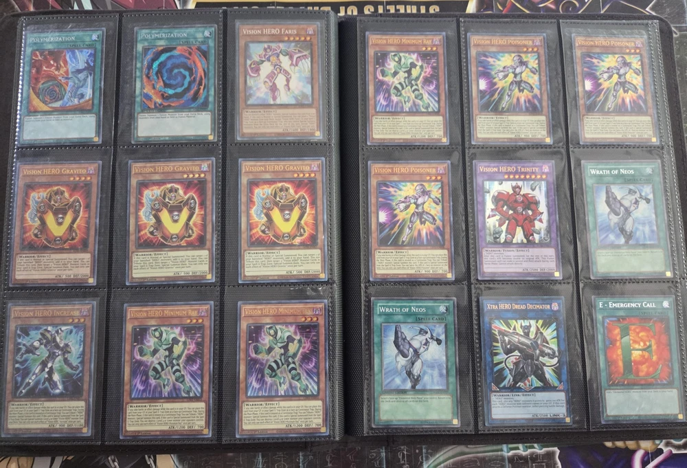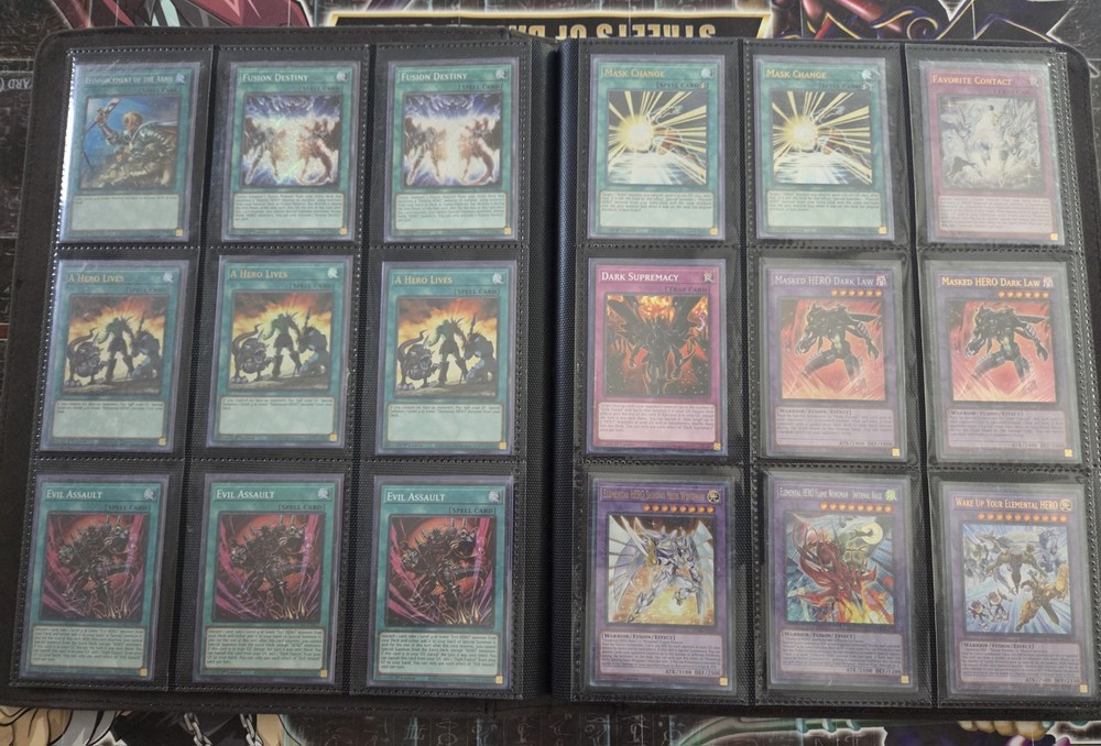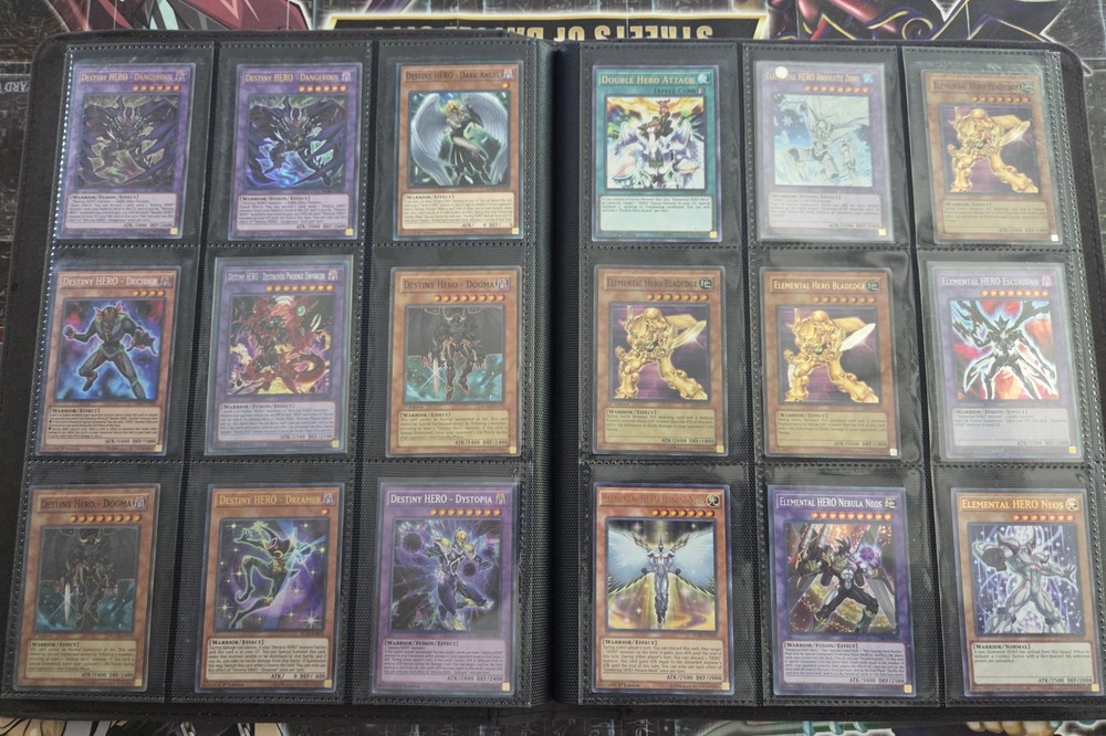 The Yugioh Complete Hero Deck Collection features 154 cards from various sets such as Legendary Hero Decks, Destiny HERO Deck, Visions, Ra Yellow Mega Pack, and Burst of Destiny. This collection includes cards from different attributes like Water, Earth, Wind, Dark, Light, and Fire. The deck collection is in English language and manufactured by Konami, with cards featuring characters like Jaden Yuki. Deck List TOTAL: 55 cards 3 A Hero Lives [MAMA] 1 Dark Contact [SUDA] 1 Dark Fusion [LDS3] 1 Dark Supremacy [SUDA] 1 Destiny HERO - Denier [BODE] 1 Destiny HERO - Destroyer Phoenix Enforcer [MP22] 1 Destiny HERO - Malicious [RYMP] 2 Destiny HERO - Malicious (UR) [LDK4] 1 Destiny HERO - Plasma (Secret Rare) [] 1 Elemental HERO Flame Wingman - Infernal Rage [BLMR] 1 Elemental HERO Liquid Soldier [LDS3] 1 Elemental HERO Neos (Quarter Century Secret Rare) [TN23] 1 Elemental HERO Shadow Mist [SDHS] 1 Elemental HERO Shining Neos Wingman [POTE] 3 Elemental HERO Stratos [BLHR] 1 Elemental HERO Sunrise [LDS3] 3 Evil Assault [SUDA] 2 Evil HERO Adusted Gold (Blue) [LDS3] 1 Evil HERO Darkest Knight [SUDA] 1 Evil HERO Dead-End Prison [SUDA] 1 Evil HERO Infernal Rider [SUDA] 1 Evil HERO Inferno Wing - Backfire [SUDA] 1 Evil HERO Malicious Bane (Blue) [LDS3] 1 Evil HERO Neos Lord [SUDA] 1 Evil HERO Sinister Necrom (Blue) [LDS3] 1 Evil HERO Vicious Claws [ALIN] 1 Favorite Contact [POTE] 2 Fusion Destiny [BLCR] 2 Mask Change [GFTP] 1 Masked HERO Dark Law (Secret Rare) [RA01] 1 Masked HERO Dark Law (UR) [RA01] 1 Miracle Fusion [DUPO] 1 Polymerization (B) (HERO Art) (Secret Rare) [] 1 Reinforcement of the Army (Secret Rare) [RA01] 3 Vision HERO Faris [GFP2] 1 Vision HERO Increase [GFP2] 2 Vision HERO Vyon [DUSA] 1 Wake Up Your Elemental HERO [MAZE] 2 Xtra HERO Cross Crusader [DANE] 1 Xtra HERO Infernal Devicer [DUOV] 1 Xtra HERO Wonder Driver [LDK4] HERO Collection TOTAL: 99 cards 1 Bubble Blaster [DP1] **DMG** 1 Burst Return [DP1] **DMG** 1 Clay Charge [DP1] **DMG** 3 Contrast HERO Chaos [SDHS] 1 D - Counter [DP05] **DMG** 1 Dark Calling [MAMA] 1 Destiny End Dragoon [LC02] **MP** 2 Destiny HERO - Dangerous [BLHR] 1 Destiny HERO - Dark Angel [LDK4] 1 Destiny HERO - Decider [DESO] 1 Destiny HERO - Destroyer Phoenix Enforcer [MP22] 2 Destiny Hero - Dogma **HP** 1 Destiny HERO - Dreamer [BLLR] 1 Destiny HERO - Dystopia [DESO] 1 Double Hero Attack [DUPO] 1 E - Emergency Call [BLC1] 1 Elemental HERO Absolute Zero [BLHR] 1 Elemental Hero Bladedge **DMG** 2 Elemental Hero Bladedge [EEN] **DMG** 1 Elemental HERO Escuridao [BLAR] 1 Elemental HERO Honest Neos [DUSA] 1 Elemental HERO Nebula Neos [CT15] 1 Elemental HERO Neos [DUPO] 3 Elemental Hero Neos Alius [TAEV] **HP** 1 Elemental HERO Ocean [CT07] **DMG** 1 Elemental Hero Poison Rose [PP02] **HP** 1 Elemental HERO Shadow Mist [SDHS] 1 Elemental HERO Spirit of Neos [POTE] 1 Elemental HERO The Shining [PRC1] 3 EN Shuffle [BLCR] 3 EN Wave [POTE] 1 Eternal Dread [DP05] **HP** 1 Evil HERO Adusted Gold (Blue) [LDS3] 2 Evil HERO Neos Lord [SUDA] 1 Fifth Hope [TAEV] **DMG** 2 Fusion Destiny [BLCR] 1 H - Heated Heart [RYMP] **MP** 1 Hero's Bond [PP02] **DMG** 1 Mask Change [GFTP] 1 Masked HERO Acid [TOCH] 1 Masked HERO Blast [RATE] 2 Masked HERO Dark Law [SDHS] 1 Masked HERO Divine Wind [SDHS] 3 NEXT [SAST] 1 Over Destiny [DP05] **HP** 2 Over Destiny [DESO] **MP** 1 Polymerization (A) (Secret Rare) [] 1 Polymerization (B) (HERO Art) (Secret Rare) [] 1 Polymerization (Duel Terminal) [HAC1] 1 Vision HERO Faris (PCR) [RA01] 3 Vision HERO Gravito [GFP2] 1 Vision HERO Increase [GFP2] 3 Vision HERO Minimum Ray [GFP2] 3 Vision HERO Poisoner [GFP2] 1 Vision HERO Trinity [BLHR] 2 Wrath of Neos [HA01] **HP** 1 Xtra HERO Dread Decimator [LDK4] 1 Reinforcement of the Army [LC03] **MP** 2 The Winged Dragon of Ra - Sphere Mode (UR) [RA01] 1 Kumongous, the Sticky String Kaiju (Silver) [BLC1] 1 Dogoran, the Mad Flame Kaiju (Silver) [BLC1] 1 Jizukiru, the Star Destroying Kaiju (Silver) [BLC1] 3 Fantastical Dragon Phantazmay (Alternate Art) [MAGO] 3 Twin Twisters (PUR) [RA02] 2 Book of Moon [BLAR] 1 Solemn Strike [COTD] 1 Solemn Warning (UR) [RA02] 1 Solemn Judgment [SESL] 1 Solemn Judgment [SDLS] There are some Damaged cards in the collection.