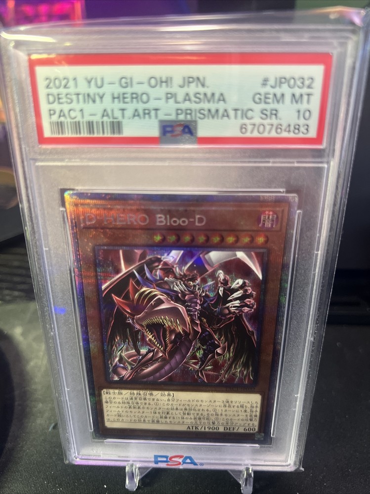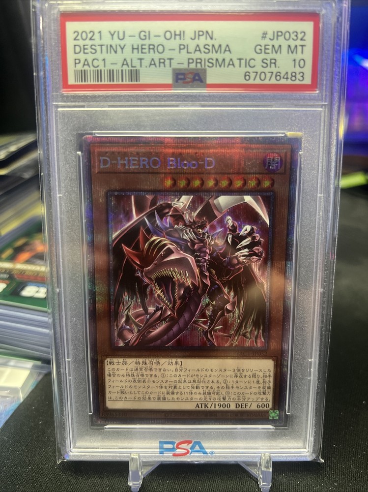 Yugioh- D-HERO Bloo-D Prismatic Secret Rare, Alternate Art PAC1-JP032, Japanese. PSA 10
