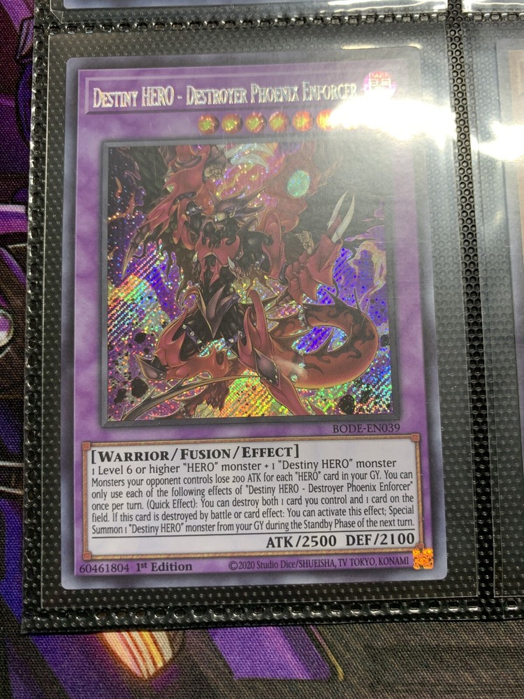 Yugioh! Destiny HERO - Destroyer Phoenix Enforcer - BODE-EN039 - Secret Rare - 1. Pulled and sleeved. I can take it out of binder and take additional photos upon request
