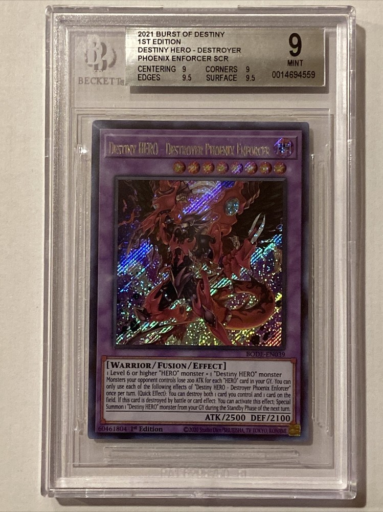 Yugioh! Destiny HERO - Destroyer Phoenix Enforcer - BODE-EN039 - Secret Rare - 1. Subgrades: Centering-9 Corners-9 Edges-9.5 Surface-9.5...