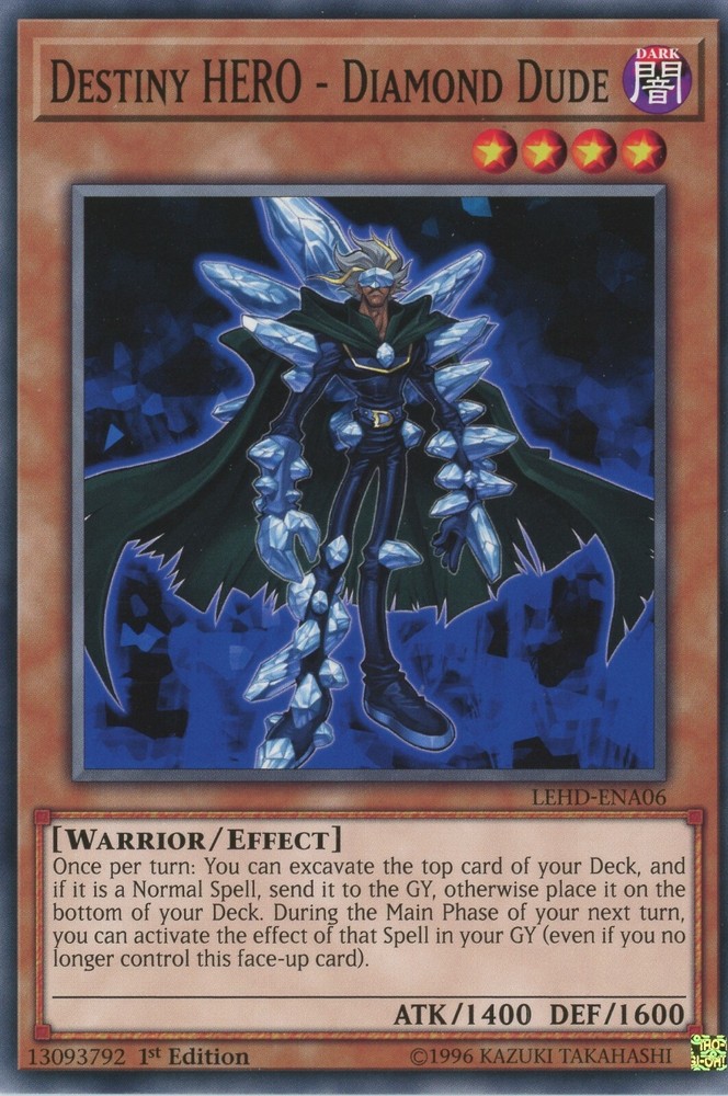 Yugioh Destiny HERO - Diamond Dude LEHD-ENA06 Common Mint Condition x3 You can find more Yu-Gi-Oh cards of all value and rarity in our other listings All cards are in excellent condition unless stated otherwise and the photos are of cards we own but may not be the exact card you receive due to the quantities listed.