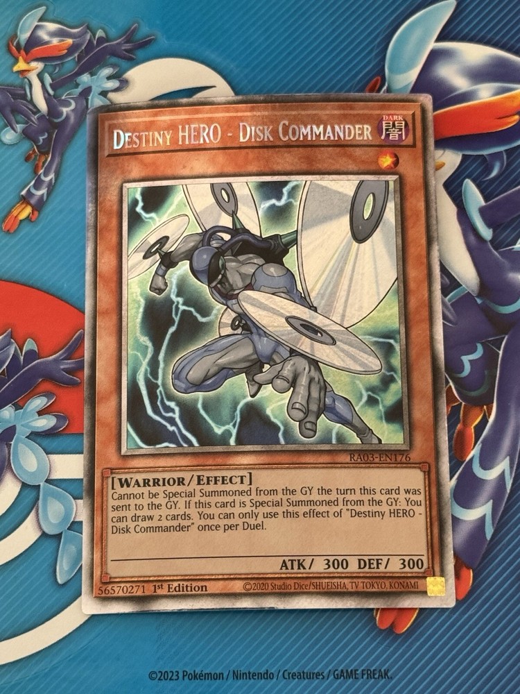 Yugioh! Destiny HERO - Disk Commander - RA03-EN176 - Platinum Secret Rare - 1st Card in near mint condition Comes in a sleeve and a toploader