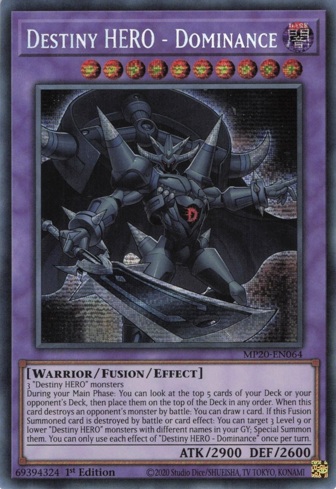 YuGiOh Destiny HERO Dominance MP20 Secret Rare 1st Ed LP Condition