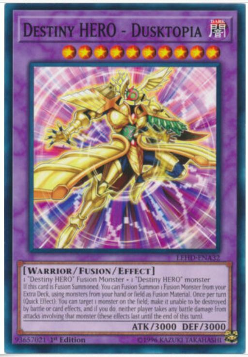 Yu-gi-oh! Destiny HERO - Dusktopia - LEHD-ENA32 - Common - 1st Edition M/NM X1 Card Grading Mint/Near Mint (M/NM) : Cards in Near Mint condition show minimal to no wear. Cards in Near Mint condition look fresh out of the pack. Excellent (EX) : Cards in Excellent condition may have minor wear, or even just slight scuffs or scratches. There are no major defects. Light Played (LP) : Cards in Lightly Played condition show moderate wear. Cards in Lightly Played condition may have moderate border wear, mild corner wear, water damage, scratching or scuffing, creases or whitening, minor dirt buildup, or any combination of mild examples of these defects. Played (P) : Cards in Played condition show a severe amount of wear. Played condition can include cards that have creasing, border wear. Heavy Play (HP) : Cards in Heavily Played condition can exhibit a bend, or crease that may make the card illegal for tournament play, even in a sleeve. Cards in Damaged condition may have extreme border wear, have been written on or major inking extreme corner wear, heavy scratching or scuffing, folds, creases or tears. Shipping Terms * Will ship your order off within 1 business day of purchase . Singles will be shipped in a top loader. Purchases made on Saturday and Sunday will be shipped off the following business day. * Please add all items to your cart prior to checkout to ensure your items are mailed together . * VERY IMPORTANT - PLEASE READ! Check your shipping address prior to check out to be sure that we are sending it to the correct address! Please be sure to include apartment or unit #’s when applicable. Payment Terms * Please pay within 3 days of purchasing your item(s) to avoid an Unpaid Item case. * Will appreciate it if you please leave feedback when you receive your item, and I will leave feedback as well. Contact me if anything is wrong with your order before leaving negative feedback, so I can have the chance to make your order right. Thank You * I believe your satisfaction will lead to our success of being the #1 provider of Yugioh cards on Ebay . * If you have any questions please do not hesitate to contact me and I will respond as soon as possible . Thank you for your time and business .