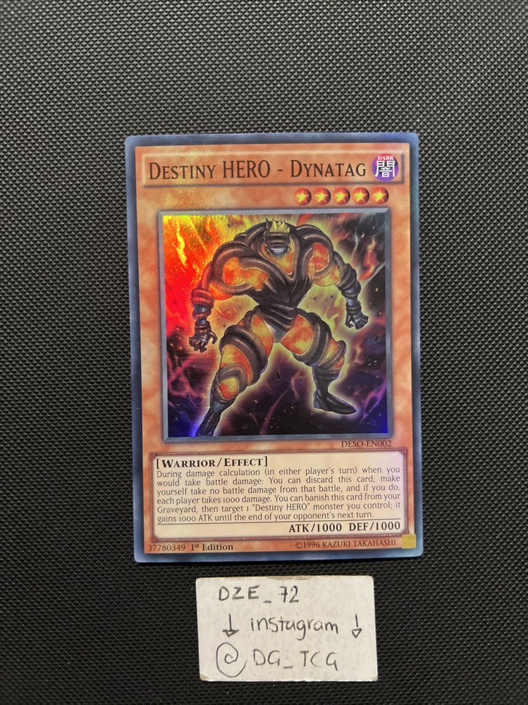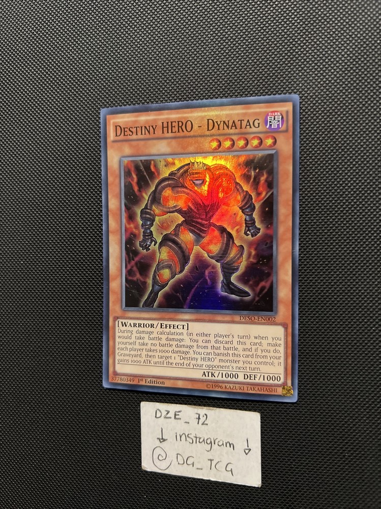 Yugioh - Destiny HERO - Dynatag - DESO-EN002 - Super Rare 1st Edition - NM. Condition - 8-8.5/10 - NM 6 IN STOCK ALL NM ⚠️COMES WITH NORMAL STANDARD SIZE ENVELOPE + TOP LOADED ⚠️ ⚠️ EXTRA $8,99 IF YOU WANT THE EXTRA PROTECTION + TRACKING & its Cardboard guarded / MAIL PADDED ⚠️ ( I DO COMBINED SHIPPING WITH ALL PURCHASES ) 📦 IF WANTED BULK MSG ME ON INSTAGRAM @DG_TCG 📲 🎉 GIVING BACK MONTH 🎉 BUY 5 + cards GET A SPECIAL GIFT & BUY 10+ cards GET A DOUBLE SPECIAL GIFT 🎉 Comes with sleeve / TOP LOADED ⚠️ Fast & Reliable Check my ebay account for more Yugioh & Pokemon & Football & NBA & UFC CARDS And MORE !!!!! ⚠️ Follow my Instagram for more card steals @dg_tcg ✅✅✅✅✅✅✅✅✅✅