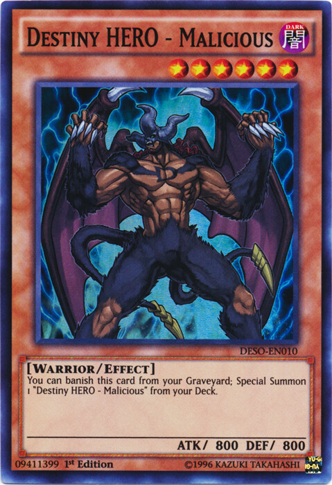 You are purchasing: Yugioh! Destiny HERO - Malicious - DESO-EN010 - Super Rare - 1st Edition Condition: Near Mint | Language: English All photos are stock, unless mentioned otherwise. Card edition, rarity, etc. is listed in the title and description. Items will be shipped within 1 business day upon receiving cleared payment. We ship Monday through Friday in order to get the item(s) to you as quickly as possible Before leaving neutral or negative feedback, please contact us beforehand so we can discuss the issue. Feel free to message me with any questions you have regarding this auction or my policies. Shipping Options: Non-Expedited Shipping - $0.99 Orders $24.99 (exc. sales tax) and under will be sent in a white envelope in a card saver + soft sleeve using eBay's Standard Envelope tracking service. Orders $30.00 (exc. sales tax) and over will be sent with free USPS tracking information w/ toploader + soft sleeve. Priority Mail - $9.99 2-3 Day shipping Orders will be shipped in a flat rate envelope in a toploader + soft sleeve. Priority Express Mail - $29.99 1-2 Day shipping Orders will be shipped in a flate rate envelope in a toploader + soft sleeve. *All orders over $100 will be sent with free insurance. All orders over $250 will be sent with free insurance and signature confirmation.* Card Grading: Near Mint (NM) - Cards with this grade will show minimal to no wear from shuffling, play or handling and can have a nearly unmarked surface, crisp corners and unblemished edges outside of a few minimal flaws. Holographic cards are more scrutinized than non-holo cards. Lightly Played (LP) - Cards with this grade may have a few dings, light playwear and/or edgewear. A few surface scratches are acceptable. A crease or bend is acceptable if it is less than approximately 1/2 inch in size and is only visible on one side. Moderately Played (MP) - Cards with this grade may have dings, playwear and/or edgwear, 1 or 2 creases or bends that do not go through the length of the card. Cards may have a 1 or 2 deep scratches. Heavily Played (HP) - Cards with this grade may have dings, playwear and/or edgwear, creases or bends that may go the length of the card, markings and/or coloring, tears on the edges. Despite being the lowest of grading, these cards are still tournament legal. If you receive a card not in the stated condition, please contact us to return the item for a full refund. Please note that card centering is not guaranteed nor is it a factor when we grade a card for condition. Thank you for buying.