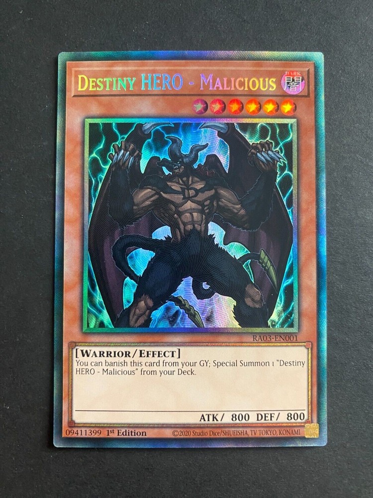 This card is absolutely stunning in person! The Prismatic Collector’s Rare treatment makes Malicious shine with incredible detail, and the Near Mint condition ensures it looks flawless. A must-have for Destiny HERO fans or collectors looking for high-quality rarity. Super happy with this purchase—packaged securely and arrived fast! Highly recommend this seller for Yu-Gi-Oh singles.
