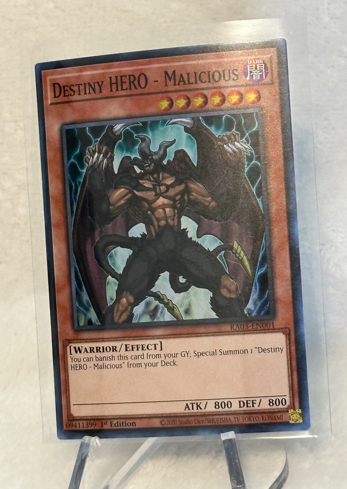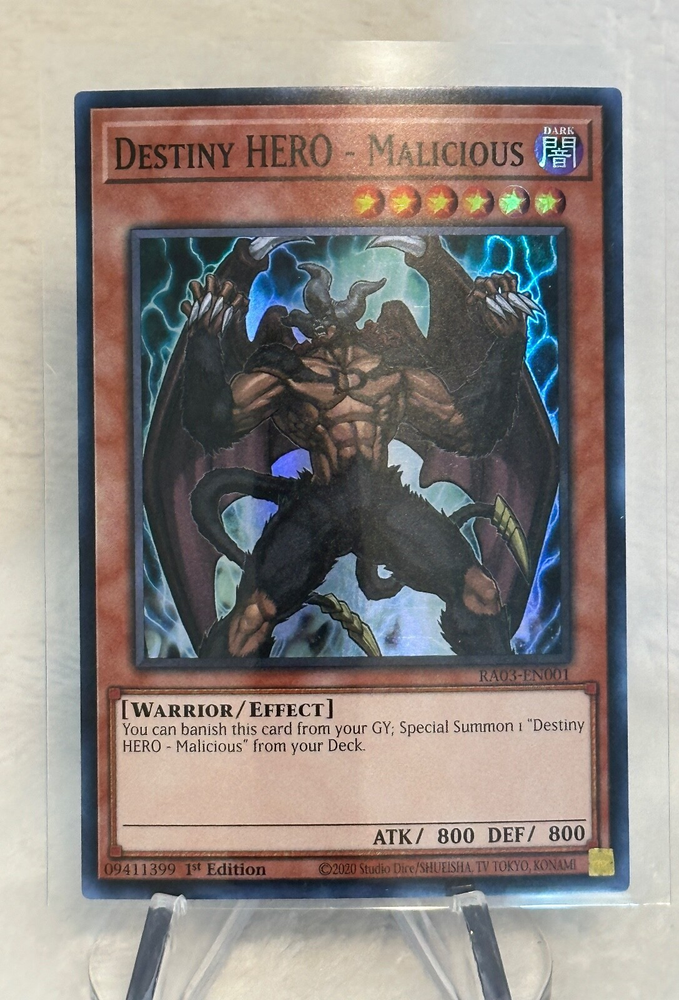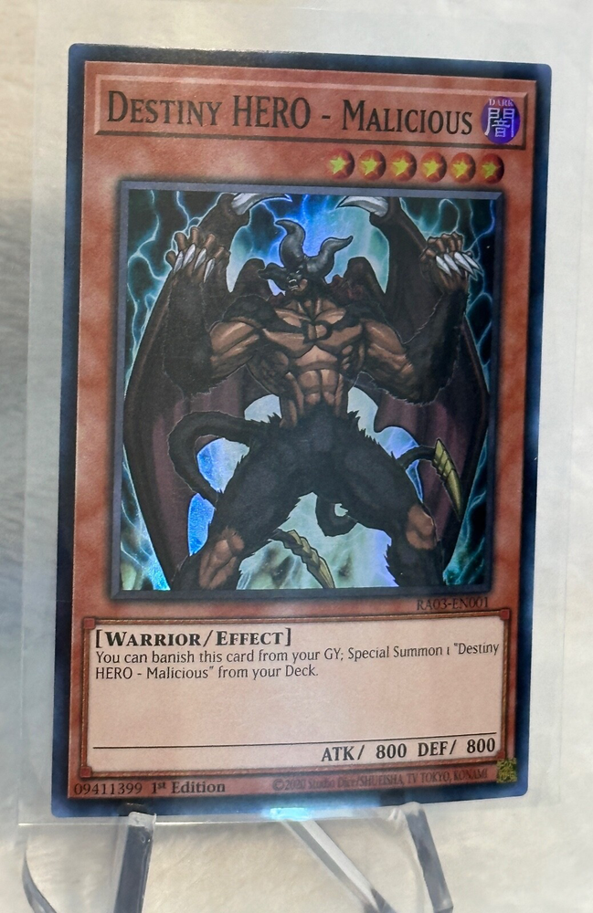 The Yugioh Destiny HERO - Malicious Super Rare RA03-EN001 1st Edition card is a highly sought-after collectible card in the Yu-Gi-Oh! TCG universe. Manufactured by Konami, this English-language card features Yami Yugi's iconic character and is part of the Destiny HERO set. With its unique attributes and special features, this 1st Edition card is a valuable addition to any card collection for fans of the game. Perfect for players aged 6 and up, this card is a rare find that is sure to enhance any Yu-Gi-Oh! gaming experience. This item has never been played, opened from fresh pack to sleeve. Please see all photos for any flaws. This item will ship in clear card sleeve inside a top loader. Please send a message with any questions. Thanks for viewing my listing.