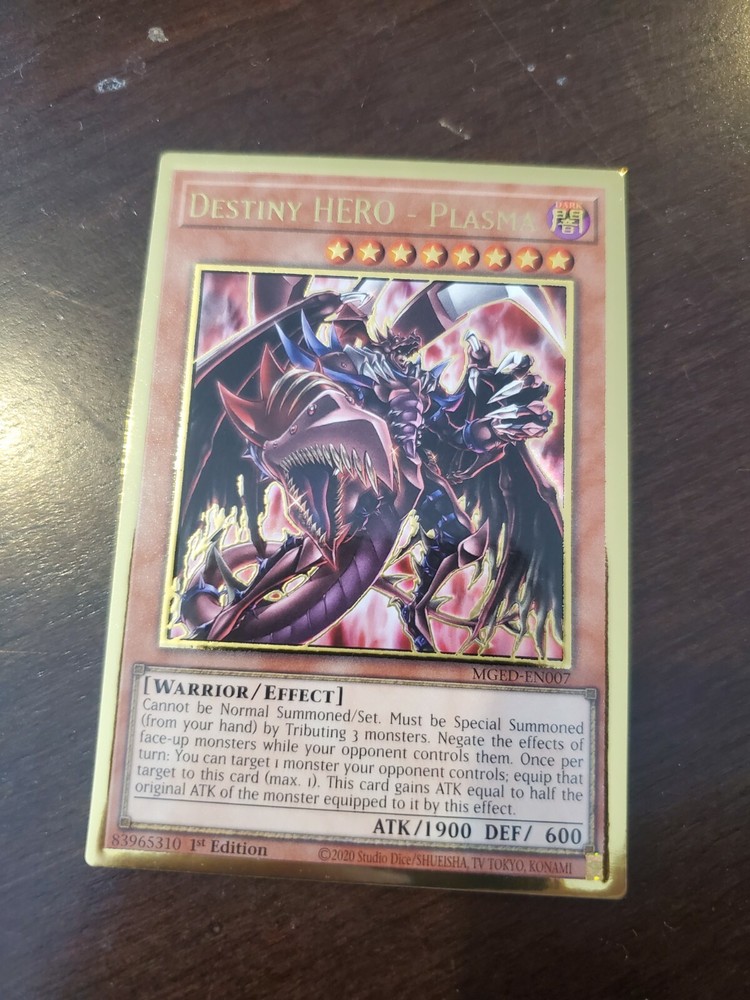 Yugioh! Destiny HERO - Plasma - MGED-EN007 - Premium Gold Rare - 1st Edition Nea.