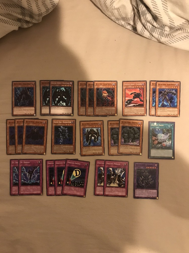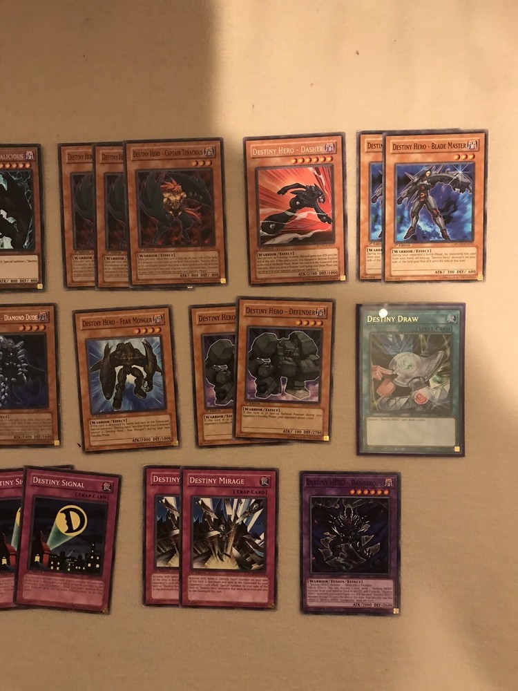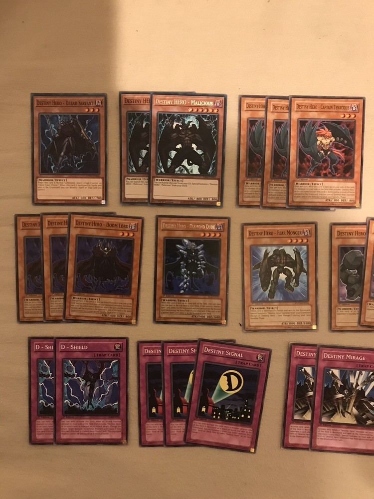 This listing offers 25 Yu-Gi-Oh! TCG cards featuring Hero-type creatures, specifically the Destiny Hero. The cards are named "Destiny" and are in lightly played (Excellent) condition. These collectable cards are a part of the CCG Individual Cards category, making them a desirable addition for fans and collectors of the Yu-Gi-Oh! Trading Card Game.