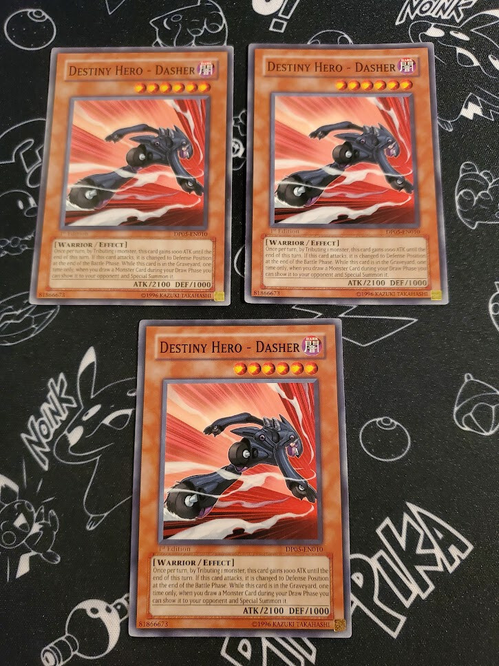 Free eBay listing template designed by dewiso.com Yugioh - Destiny Hero - Dasher DP05-EN010 NM 1st ed Common x3 Product This a Yugioh Product that is being sold! Condition is exactly as pointed out in title. For you're reference: NM: Near Mint VLP: Very Lightly Played LP: Lightly Played MP: Moderately Played HP: Heavily Played Shipping This listing will be shipped via card sleeve/penny sleeve and a top loader via letter mail. If you are purchasing an order of over $150 I will provide shipping with tracking free! Contact If you have any questions whether it be more pictures of the back or clarification on an order please contact me! We will do everything to Help! Also if you have multiple items or even have specific things you are looking for, reach out and we might just have it! There are no refunds, items are final sale! If the item has been incorrectly described or wrongly sent, please send images and we will sort it out right away! If the product has X2 or X3, it means it will either come with 2 of the same card or 3 of the same card. Be sure to always check the title of the listing! Great quality products that we ship across North America! Be sure to leave a review when you receive the item! Collection and Bulk Pokemon/Yugioh Purchases If you have any collections or bulk cards that you wish to sell please contact me and send pictures of what you're looking to sell! Rates: Contact me for rates! Reminder: I am looking to make profit when buying and selling, so please when reaching out realize that we both have to profit off the transaction!