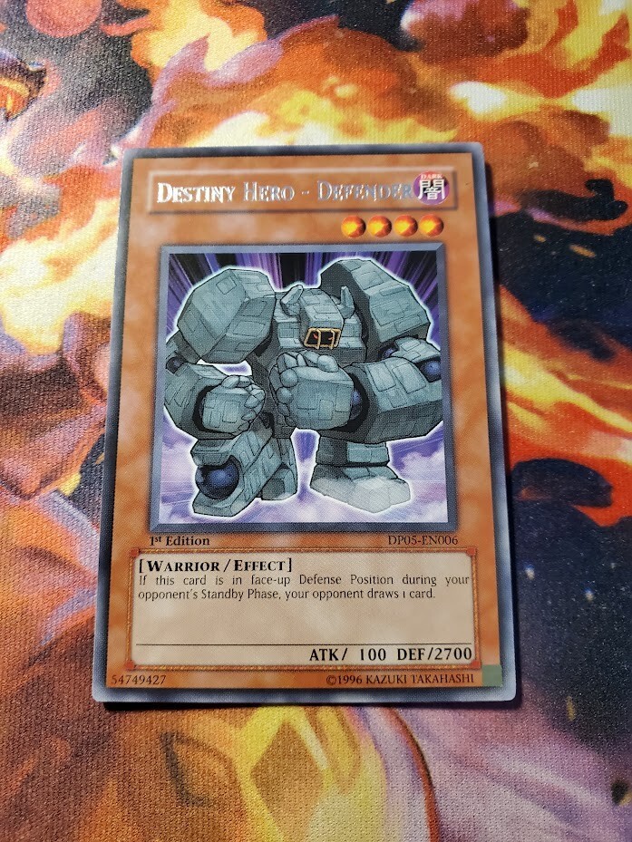 Free eBay listing template designed by dewiso.com Yugioh - Destiny Hero - Defender DP05-EN006 NM 1st ed Rare Product This a Yugioh Product that is being sold! Condition is exactly as pointed out in title. For you're reference: NM: Near Mint VLP: Very Lightly Played LP: Lightly Played MP: Moderately Played HP: Heavily Played Shipping This listing will be shipped via card sleeve/penny sleeve and a top loader via letter mail. If you are purchasing an order of over $150 I will provide shipping with tracking free! Contact If you have any questions whether it be more pictures of the back or clarification on an order please contact me! We will do everything to Help! Also if you have multiple items or even have specific things you are looking for, reach out and we might just have it! There are no refunds, items are final sale! If the item has been incorrectly described or wrongly sent, please send images and we will sort it out right away! If the product has X2 or X3, it means it will either come with 2 of the same card or 3 of the same card. Be sure to always check the title of the listing! Great quality products that we ship across North America! Be sure to leave a review when you receive the item! Collection and Bulk Pokemon/Yugioh Purchases If you have any collections or bulk cards that you wish to sell please contact me and send pictures of what you're looking to sell! Rates: Contact me for rates! Reminder: I am looking to make profit when buying and selling, so please when reaching out realize that we both have to profit off the transaction!
