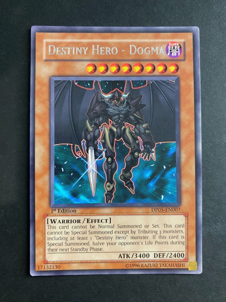 This Yugioh Destiny Hero - Dogma card is a fantastic addition to any collector's deck! The 1st Edition Rare is in excellent Near Mint condition with barely any flawsβjust as described. Super happy with the purchase, and it arrived quickly. Highly recommend for fans of the Destiny Hero series!
