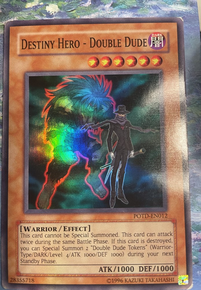 Yugioh, Destiny Hero - Double Dude, POTD-EN012, Super Rare, UNL, LP/MP....