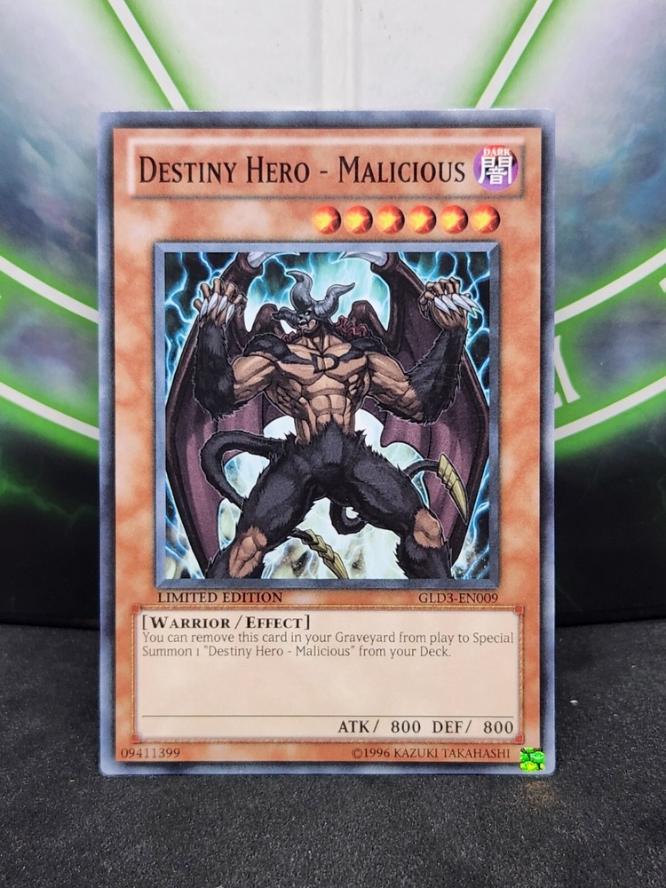 Yugioh Destiny Hero - Malicious GLD3-EN009 Common Limited Edition NM. Condition is Used. Sent with Australia Post Domestic Regular Letter Untracked....