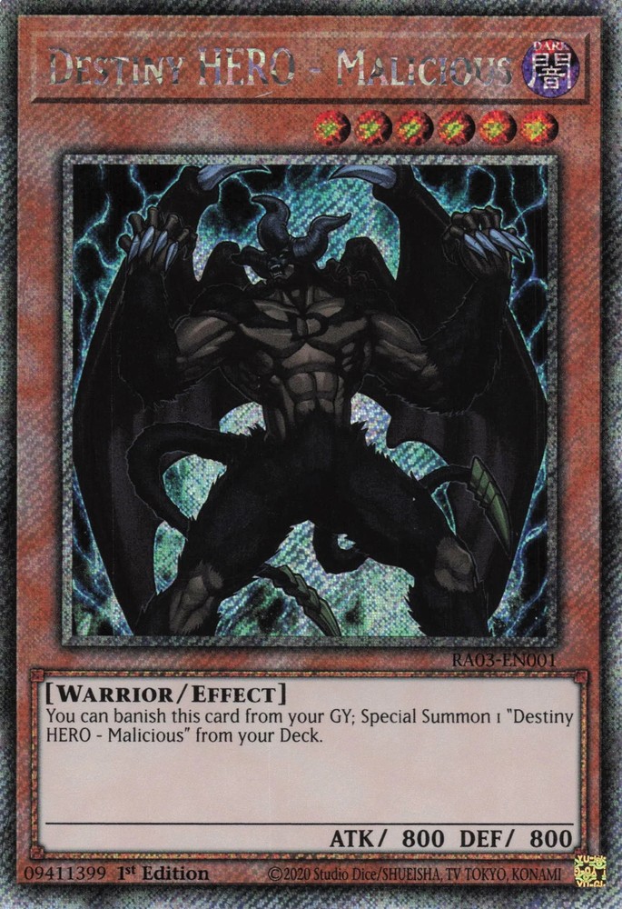 Yugioh RA03-EN001 - Destiny Hero Malicious - Platinum Secret Rare - - Quarter Century Bonanza