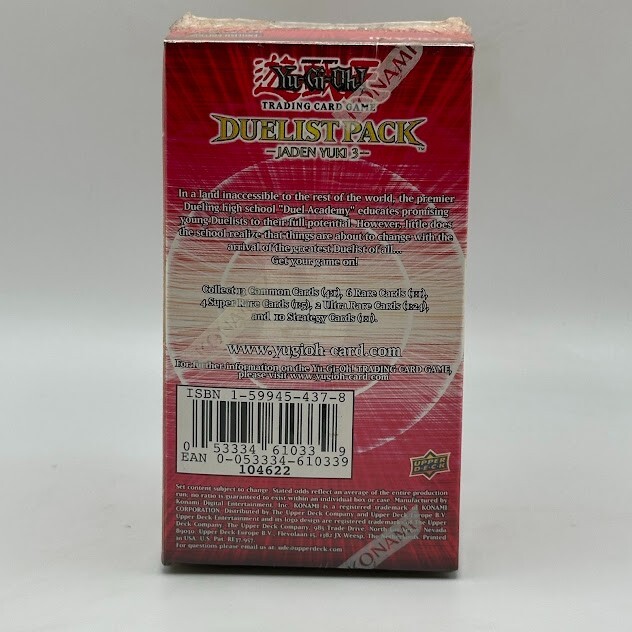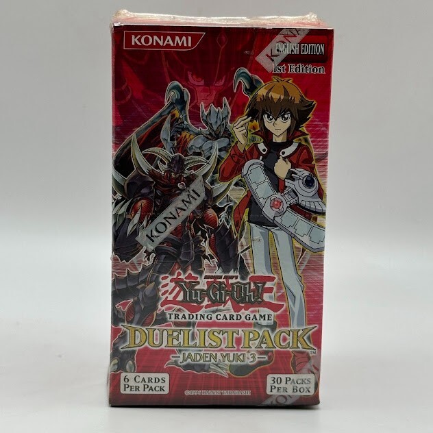Fusion summon with the heart of the cards! The Yu-Gi-Oh! Duelist Pack: Jaden Yuki 3 Booster Box (1st Edition, Set Code: DP06) brings you straight into the GX era with fan-favorite Elemental HERO cards , Neo-Spacians , and key support used by Jaden Yuki in the anime. This factory-sealed booster box with 30 packs is a nostalgic gem for collectors and GX duelists alike! 📦 Product Details : Product Name : Duelist Pack – Jaden Yuki 3 Edition : 1st Edition, English Set Code : DP06 Release Year : 2008 Condition : Factory Sealed Booster Box – Authentic Konami shrink wrap Box Contents : 30 Booster Packs 5 Cards Per Pack Includes Commons, Rares, Super Rares, and Ultra Rares Great for pulling anime-accurate cards and deck cores 🌟 Key Cards You Might Pull : 🔥 Elemental HERO Support : Elemental HERO Neos Wiseman Elemental HERO Divine Neos HERO Flash!! Instant Neo Space 🌀 Neo-Spacians & Fusion Spells : Neo-Spacian Twinkle Moss Neo-Spacian Marine Dolphin Contact Out Reverse of Neos 🎯 Why This Box Is Special : ✨ GX Anime Nostalgia : Features cards used by Jaden Yuki in Season 3 of Yu-Gi-Oh! GX 📈 1st Edition Factory Sealed : Scarce box from a beloved character-themed set 🧠 Perfect for HERO Deck Builders : Pull HERO, Neos, and Contact Fusion support 🎁 Great Display Value : Bold, character-themed box art ideal for sealed collections 🕹️ Part of Duelist Pack Legacy : Set #DP06 in the Duelist Pack series—highly collectible 📬 Shipping & Handling : 📦 Ships securely in a reinforced, crush-proof box 🔒 Guaranteed Factory Sealed & Authentic from Konami 🧼 Stored in a smoke-free, climate-controlled environment 🔍 SEO Highlight : Yu-Gi-Oh! Duelist Pack: Jaden Yuki 3 Booster Box – Factory Sealed – 1st Edition – 30 Packs – DP06 – Elemental HERO – Neos – GX Anime – TCG CCG – Konami 🦸 Click “Add to Cart” now and join Jaden in the Duel Academy—will your box reveal Neos Wiseman, Divine HERO fusions, or classic GX nostalgia? 💫🔥